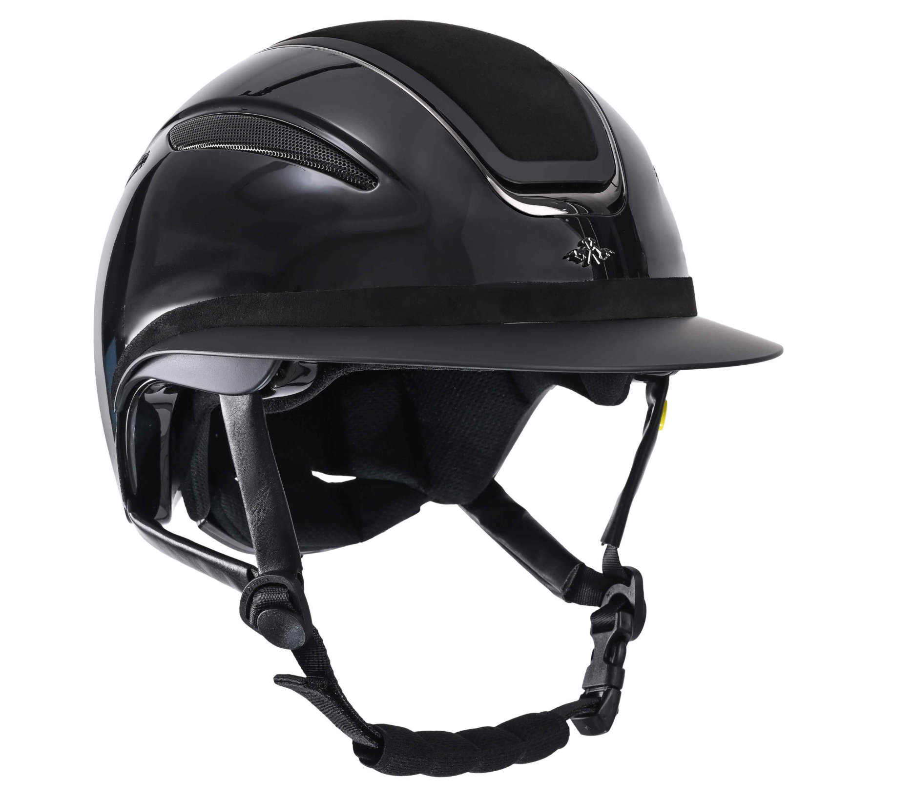 Onze helm Magnifica is werkelijk schitterend! Het heeft een hoogwaardige suède bovenkant, strass-steentjes en een suède rand op sommige kleuren. Het stijlvolle polovizier beschermt je tegen de zon. Om u verder te beschermen heeft de helm een geïntegreerd Mips veiligheidssysteem en voldoet aan alle belangrijke normen.