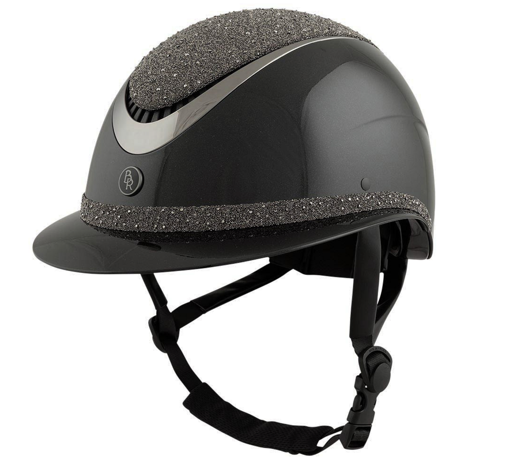 This eye-catching helmet with 3D glitter top, extra glitter edge and large visor not only offers comfort but also a perfect fit thanks to the rotating disk. Meets CE EN 1384-2023 safety standards. Made of lightweight ABS material with luxurious details such as imitation crystals and a carbon coating for extra strength. Equipped with a quick release buckle and soft Cooldry® chin protector. The removable Cooldry® lining is machine washable at 40°C.
