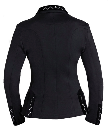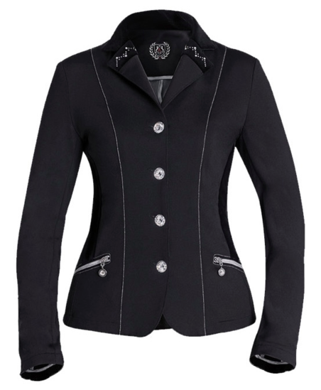 A unique competition jacket for women who go for comfort & elegance. Beautifully finished with a velvet collar with bling stones.