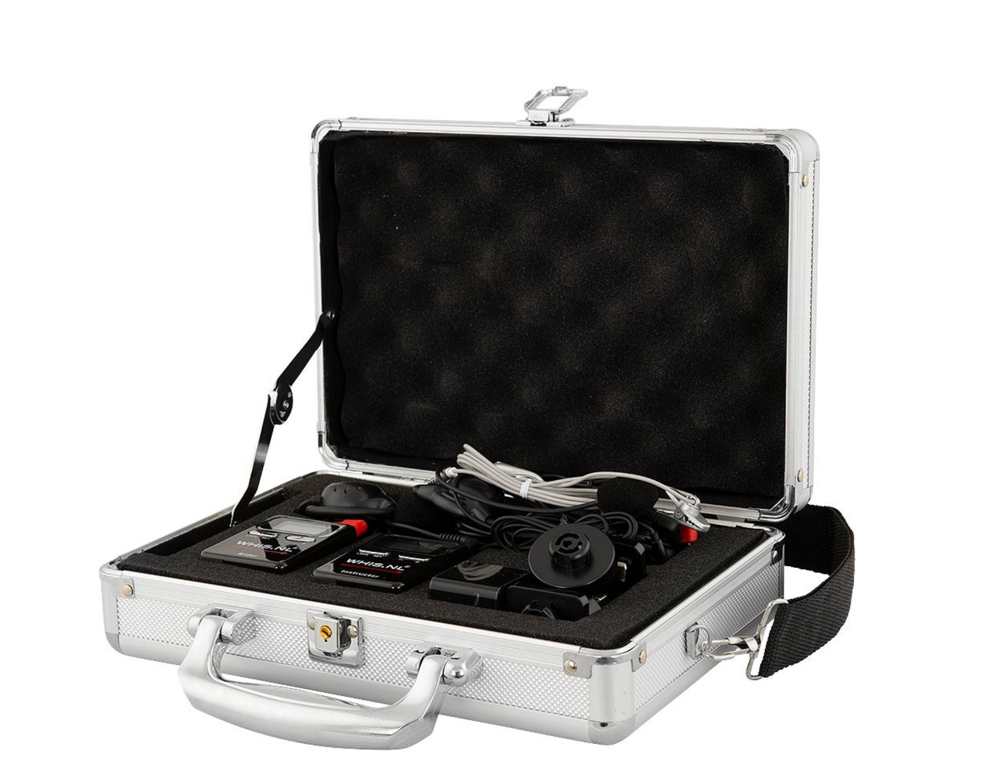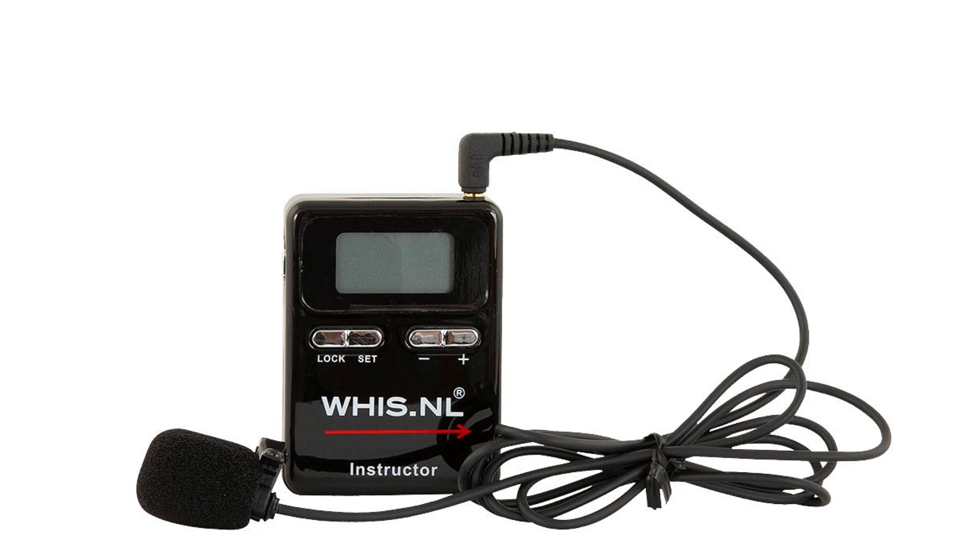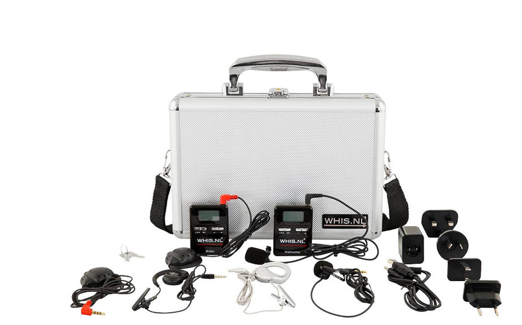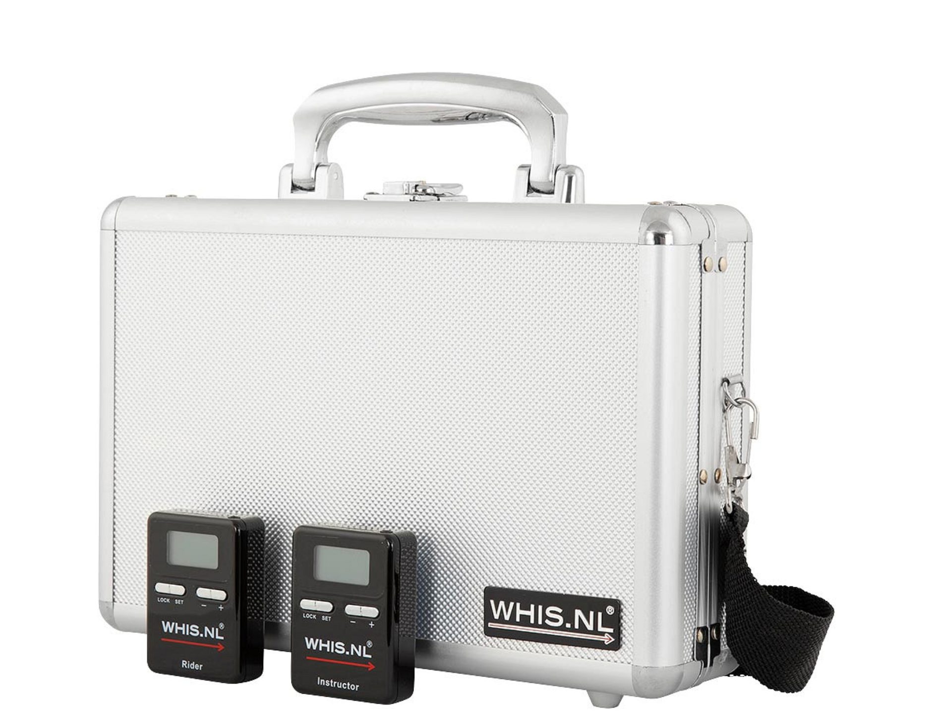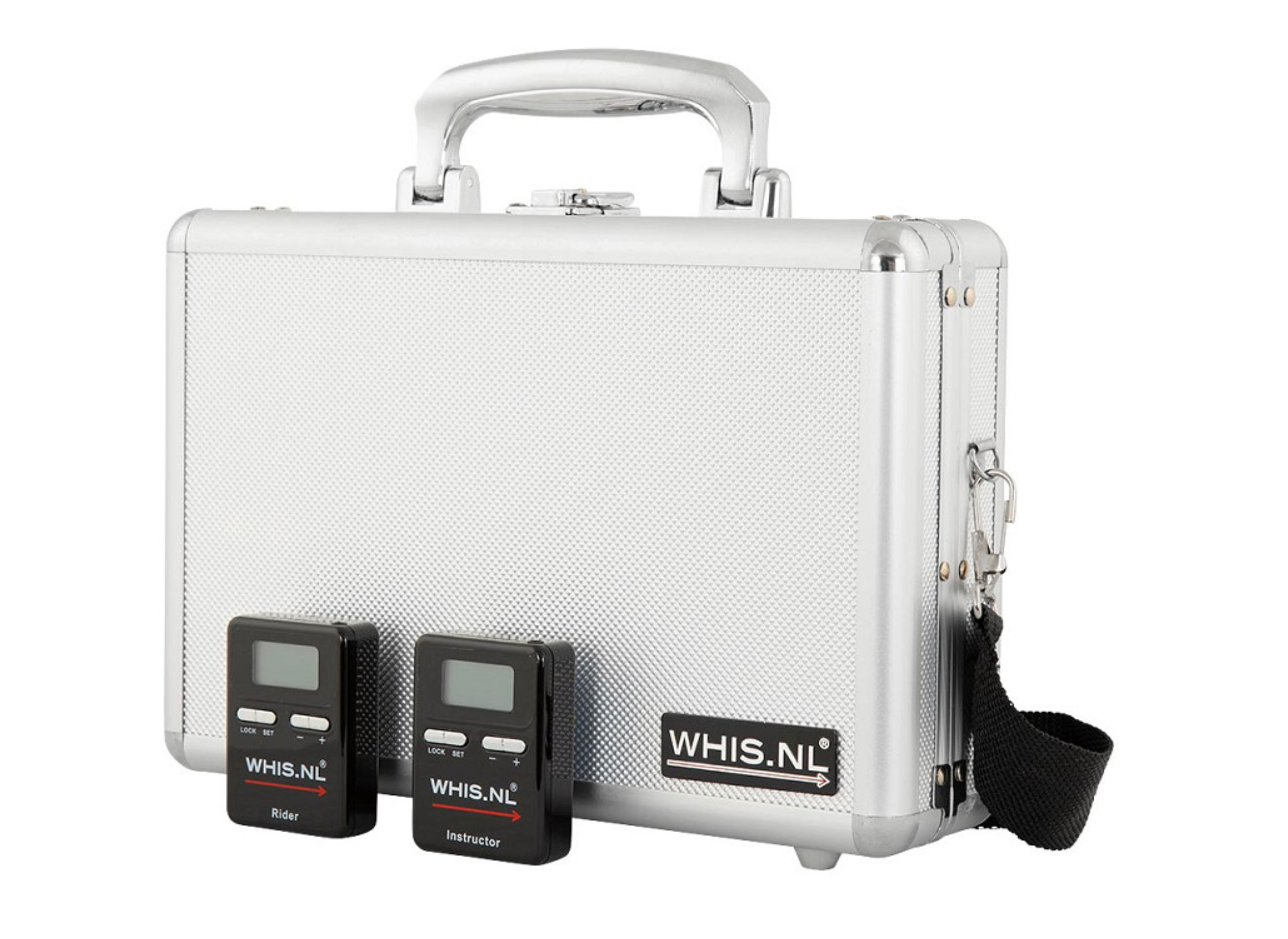 De WHIS Original Set biedt instructeurs de mogelijkheid om de lesruiters te instrueren zonder te moeten schreeuwen. De set bevat een zender voor de instructeur en een ontvanger voor de ruiter. Op het beeldscherm kun je zien op welke zender en ruisonderdrukking het apparaat ingesteld staat en hoeveel procent batterij er nog over is.