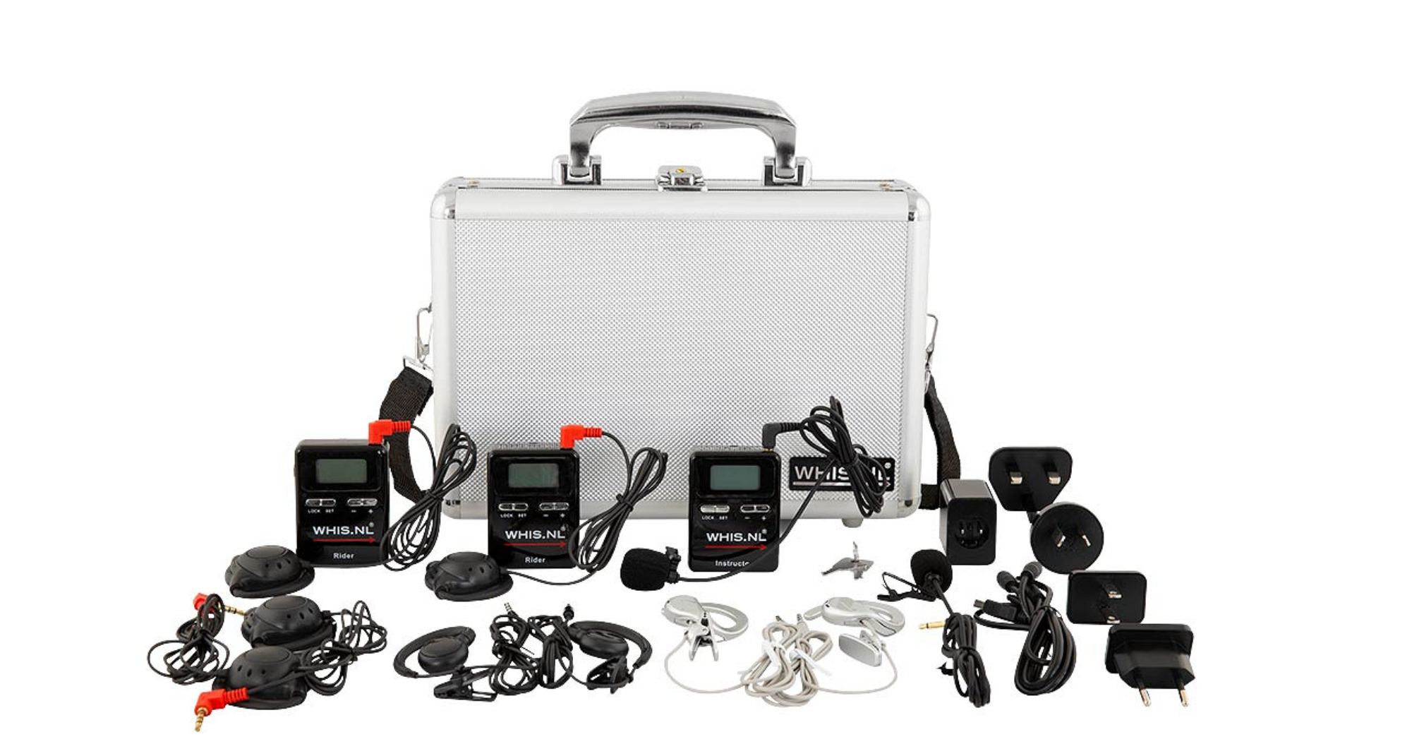 De WHIS Original Duo biedt instructeurs de mogelijkheid om de lesruiters te instrueren zonder te moeten schreeuwen. De set bevat een zender voor de instructeur en maar liefst twee ontvanger voor de ruiters. Op het beeldscherm kun je zien op welke zender en ruisonderdrukking het apparaat ingesteld staat en hoeveel procent batterij er nog over is.