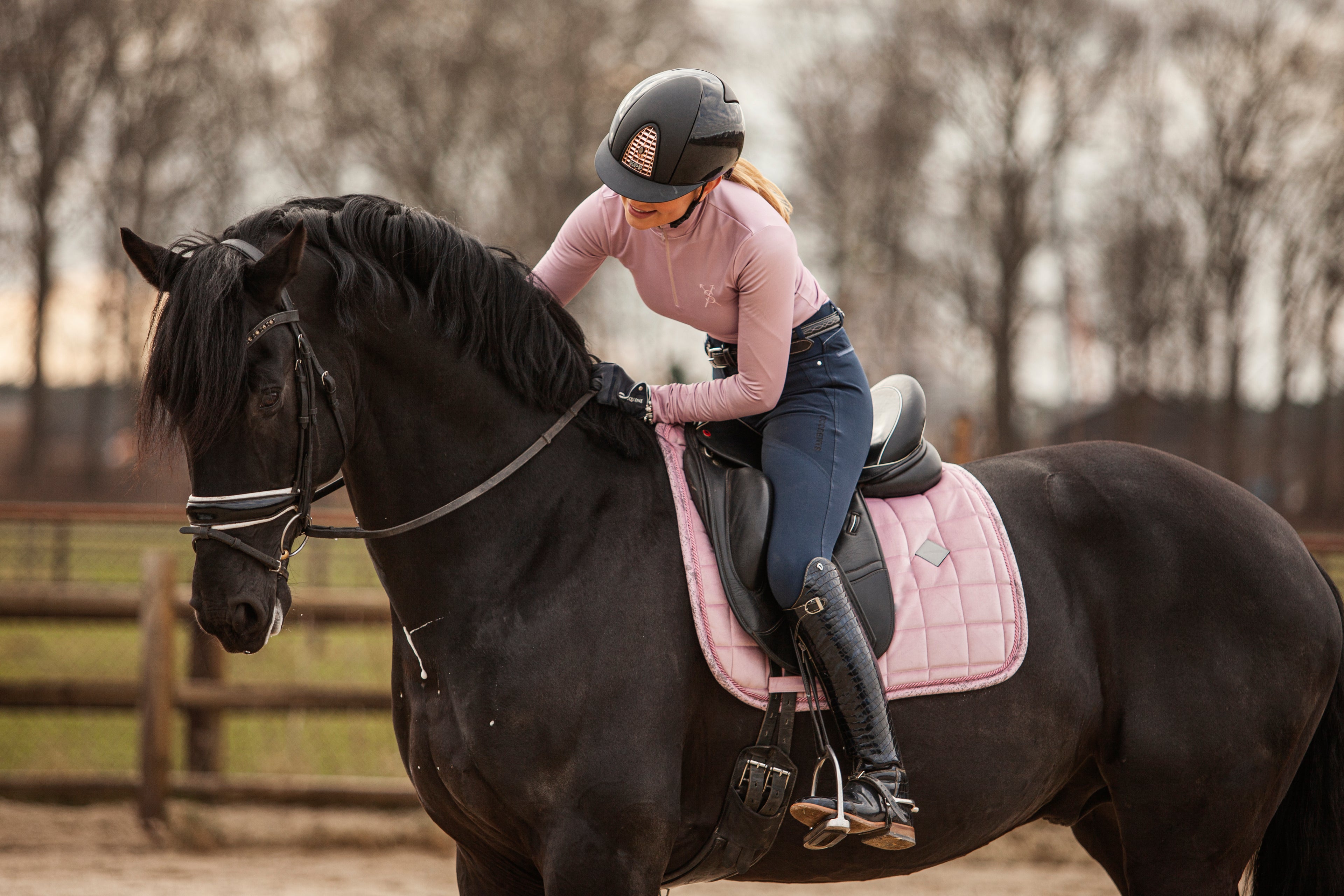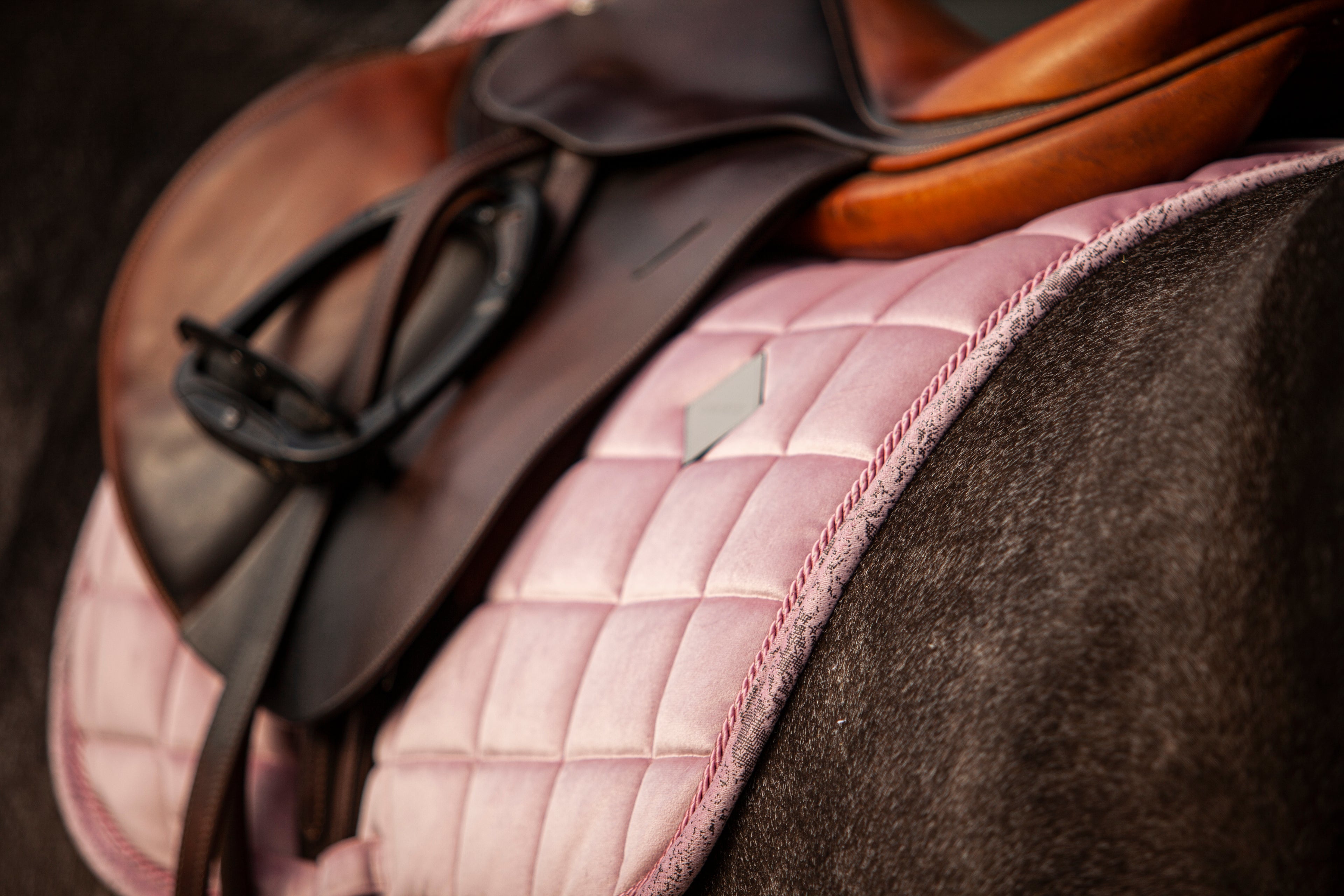 The outside of these saddle pads are made of a luxurious suede fabric. Suede provides a chic look and has a brushed structure. The inside of the saddle pad consists of a polyester mesh layer which ensures the ultimate moisture absorption and has the additional property that this is a quick-drying fabric.