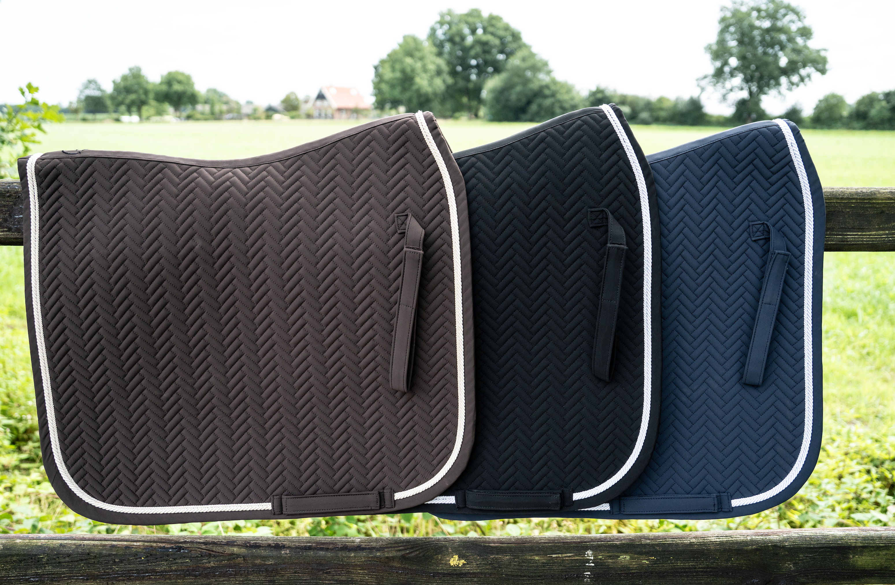 De rand met decoratief koord geeft het zadeldek een chique uitstraling en maakt het een elegante toevoeging aan iedere uitrusting. Functionaliteit en design komen perfect samen in dit veelzijdige zadeldek.