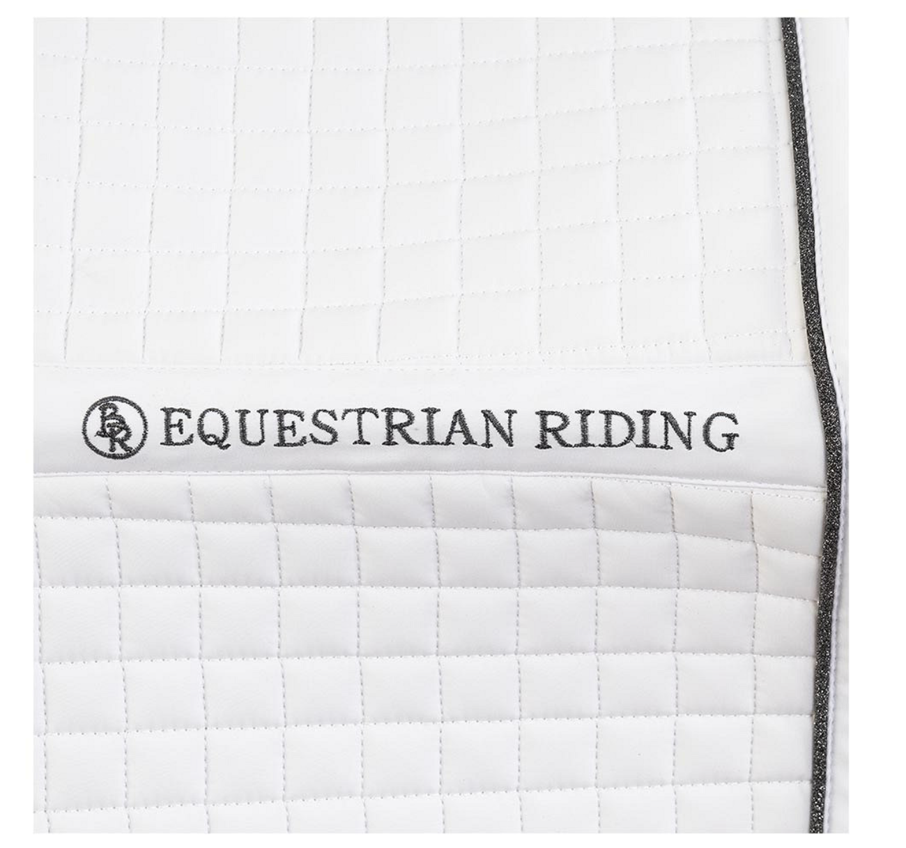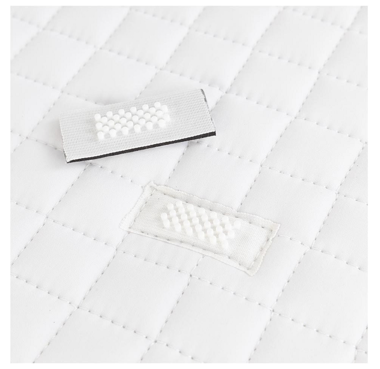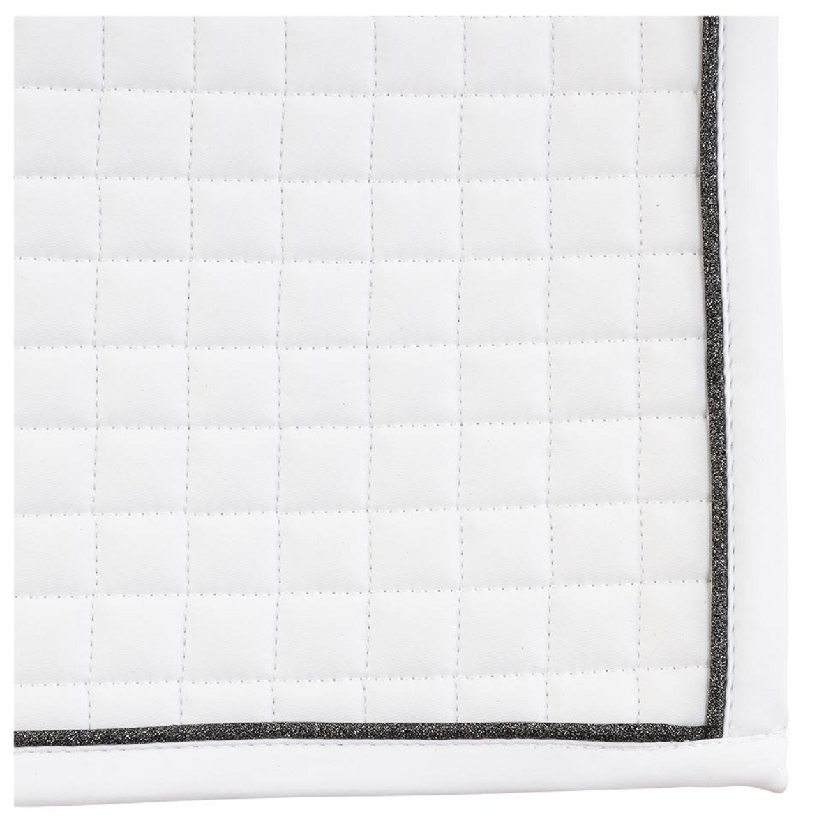 This beautiful saddle pad is elegantly finished with a luxurious, dark grey glitter piping and is square quilted. Ideal for making a stunning impression at a competition. The breathable lining of Cool Plus ensures that moisture is transported away for a quick-drying effect so that the horse continues to feel as comfortable as possible under the saddle pad. The saddle pad is equipped with girth loops with Velcro.