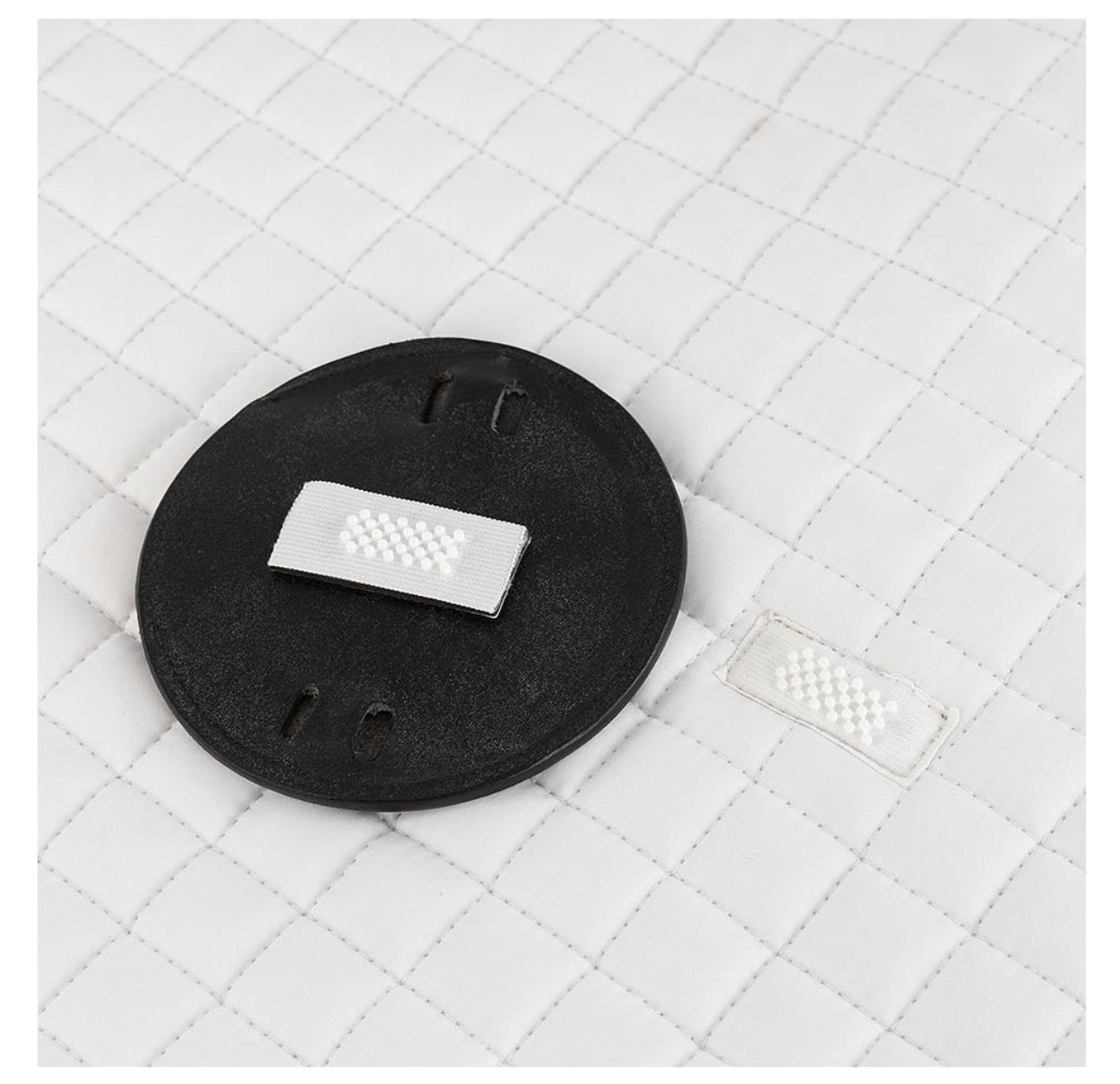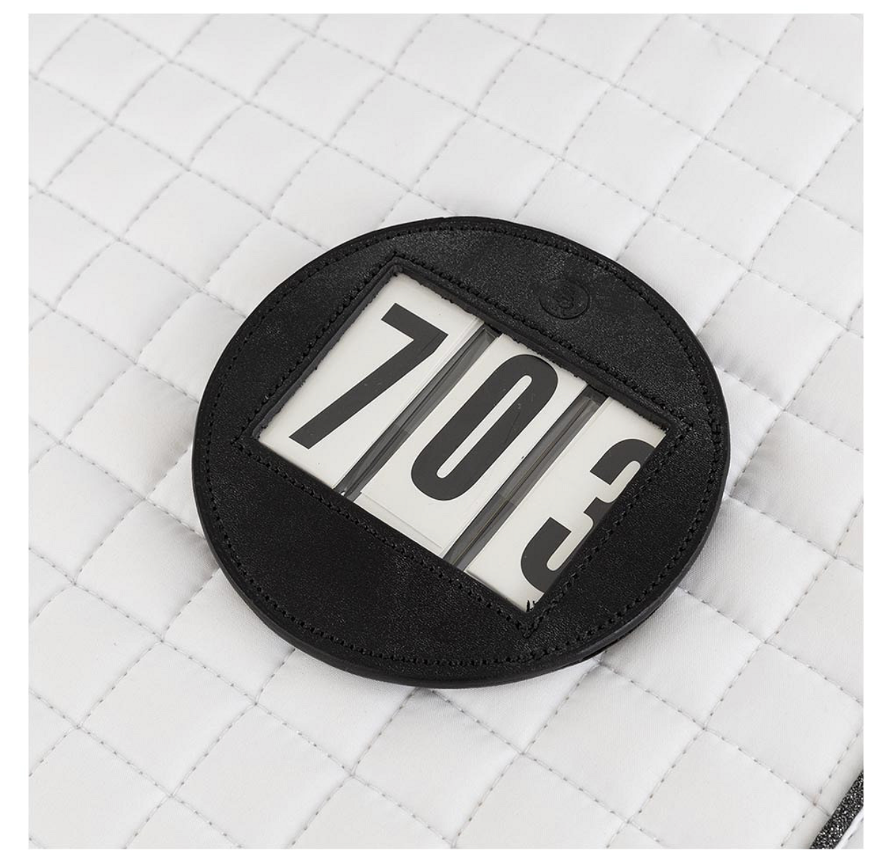 On both sides there is a removable tab with an adhesive strip that you can remove from the saddle cover. Remove the adhesive strip from the tab to attach the start number and place the tab back on the saddle cover. The tab with the start number remains firmly in place thanks to the click system.