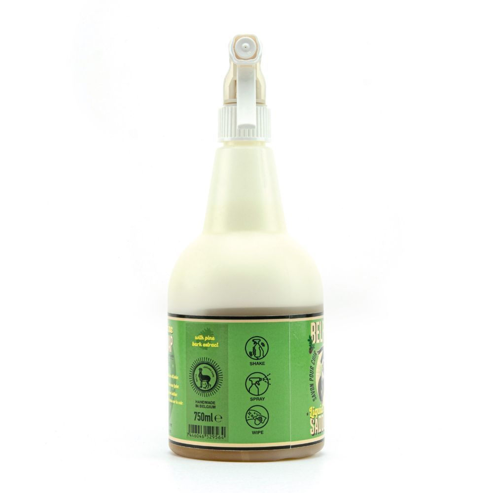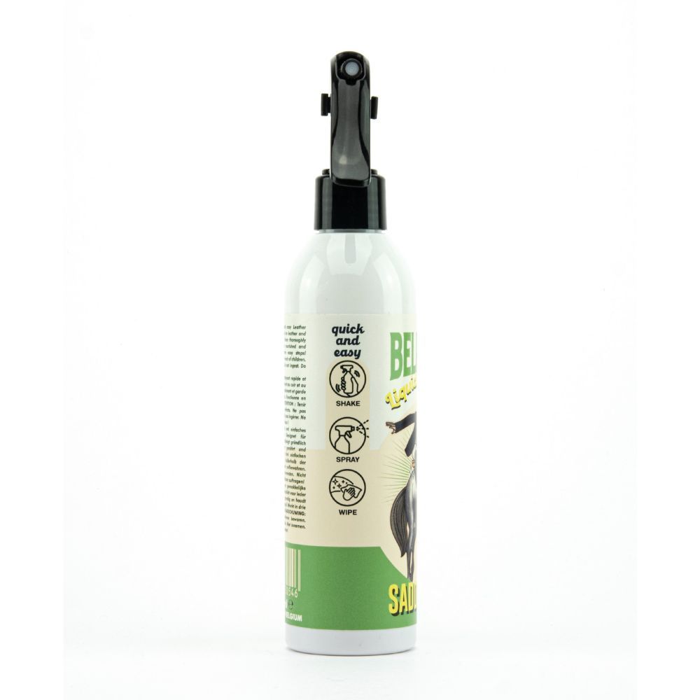 De flacon goed schudden voor gebruik zo wordt de zeep vermengt met de olie. Daarna spray je de Belpolon vloeibare zadelzeep op het schoon te maken oppervlak. Hierna met een doek de vloeibare zadelzeep uitwrijven over het oppervlak. En je laarzen, schoenen, hoofdstel, tuig of zadel is weer schoon en verzorgd.