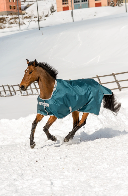 De Atlantic heeft een Click'n Go-sluiting aan de voorkant met magnetische drukknoopsluiting om de deken stevig op uw paard te houden. De deken heeft de perfecte pasvorm met schoudernaden en een buitenkant van ballistisch nylon met een waterdichte en ademende coating. Verkrijgbaar met 50g en 200g isolatie.