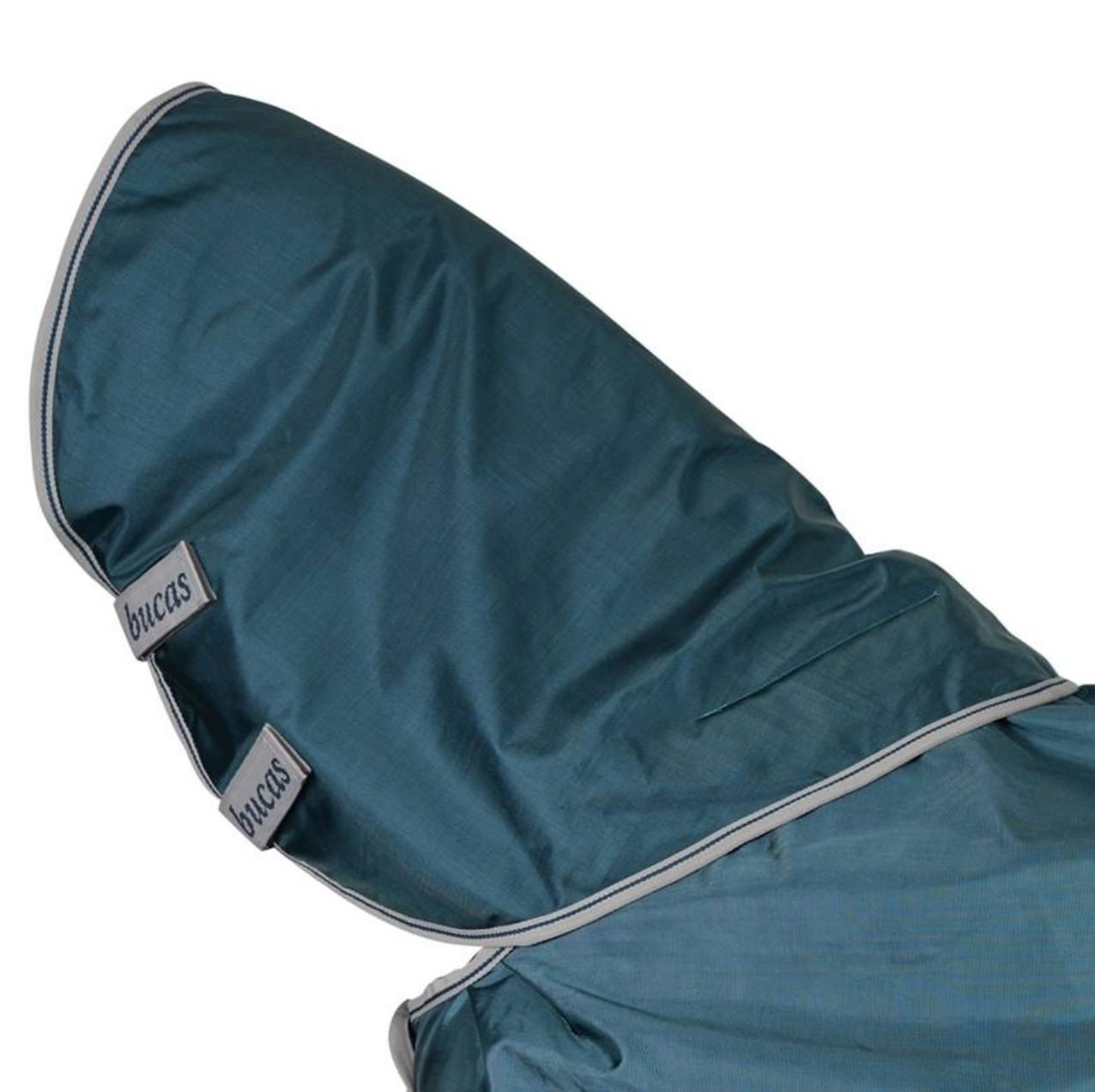 Door een hals te bevestigen aan de deken voorkom je dat het paard warmte verliest en/of nat wordt door zware regenval.