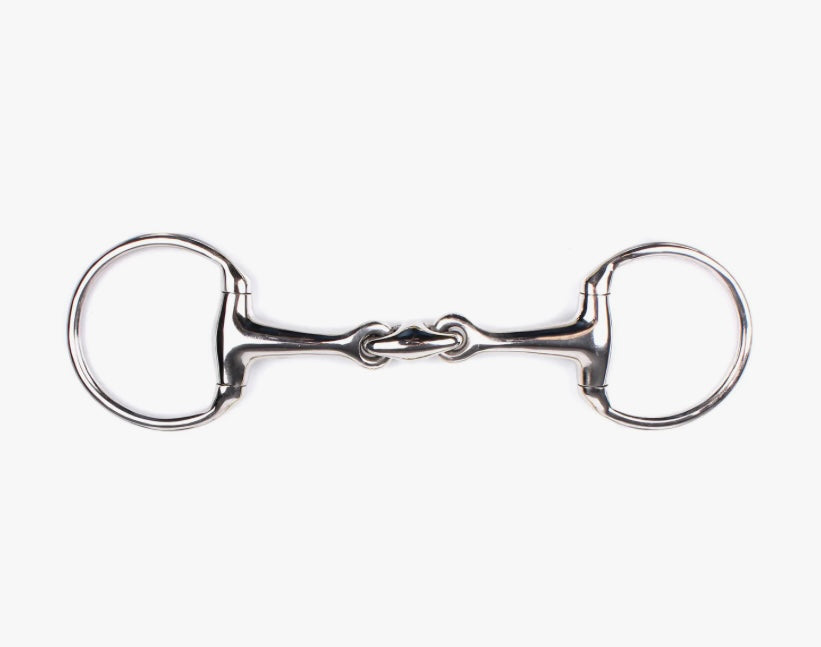Een zacht bit dat door de meeste paarden wordt geaccepteerd. Een bustrens heeft vaste ringen waardoor de beweging van de hand direct inwerkt. Door het dubbelgebroken mondstuk werkt het bit meer in op de tong. RVS-heeft als voordeel dat het niet roest en duurzaam is.