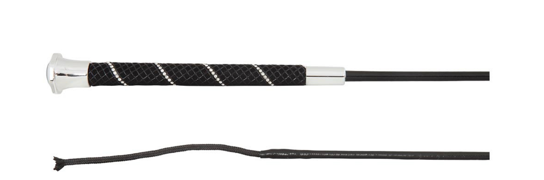 De BR dressuurzweep Andromeda heeft een fiberglas kern. De speciale coating van de stok zorgt voor een lichte glans en een langere levensduur. Ook het klapkoordje (10 cm) is door de verstevigende coating extra duurzaam. De zweep heeft een siliconen antislip handgreep met imitatiediamanten en een luxe zilverkleurige knop. VE 3.