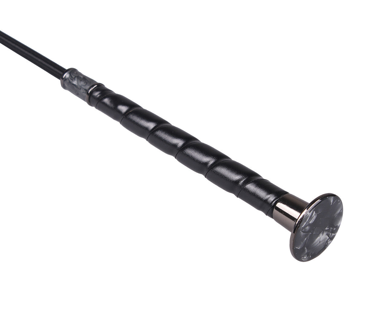 Dressuurzweep Dashing kenmerkt zich door het chic afgewerkte handvat. Deze is voorzien van een marmerlook op de knop en aan het uiteinde van het handvat. De zweep is afgewerkt met een knop voor een goede ligging in de hand.