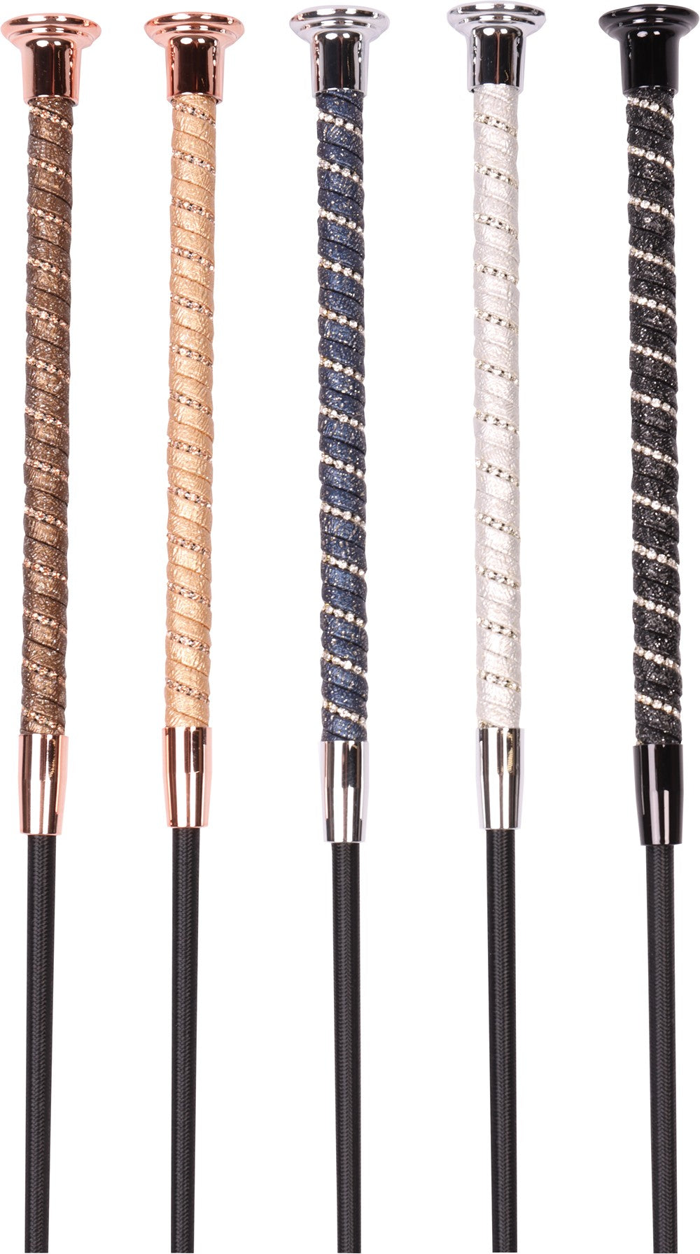 Luxe dressuurzweep. Met extra opvallend handvat met luxe kristallen. Verkrijgbaar in zwart, navy, zilver, goud en brons.