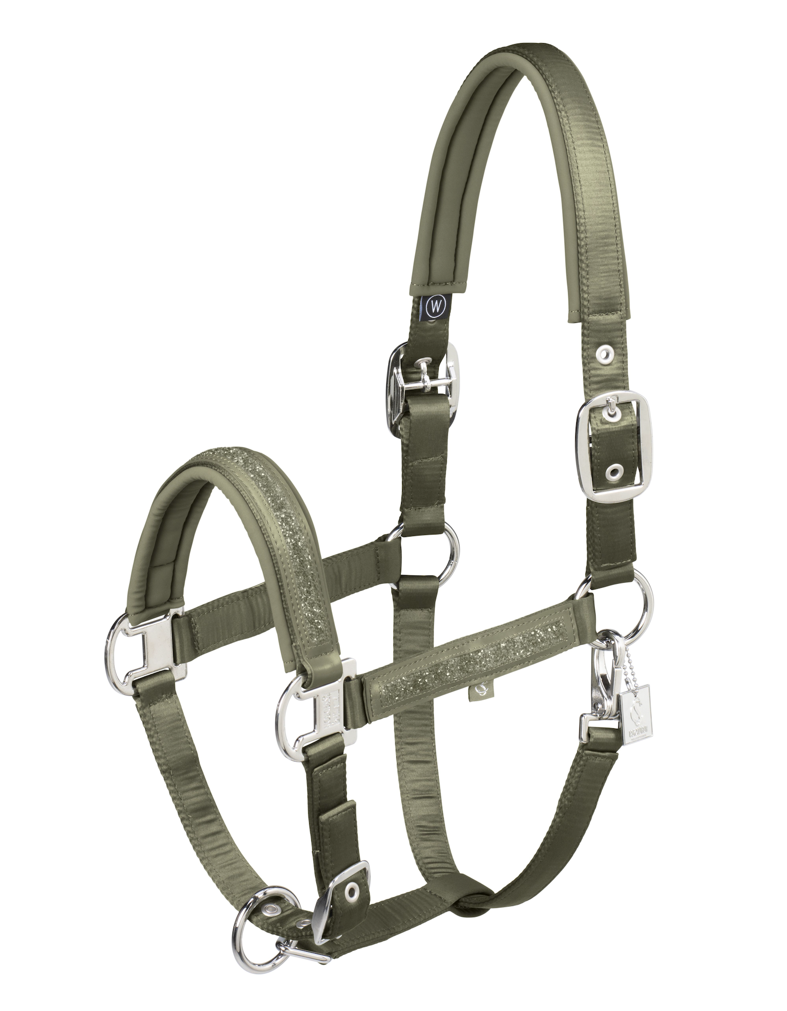 Dit halster is gemaakt van matglanzend materiaal met ingezette glitters op neusriem en wangstukken. De zachte vulling bij de neus en kopstuk zorgen voor extra comfort voor je paard. Door de dubbele sluitingen is het halster goed te verstellen.