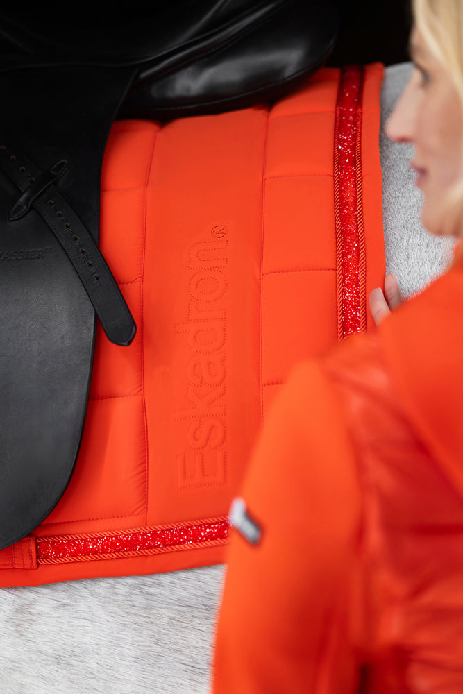 Geef je paard een stijlvolle look met het Eskadron Dynamic Big Square Jewel zadeldek. Dit luxe zadeldek combineert ultiem comfort met een chique uitstraling. De opvallende Big Square-stikseling zorgt voor optimale drukverdeling, terwijl de glanzende stof en subtiele jewel-details een elegante finish geven. Dankzij de ademende voering blijft je paard droog en comfortabel, zelfs tijdens intensieve trainingen. Voorzien van stevige singel- en zadellussen voor een perfecte pasvorm.