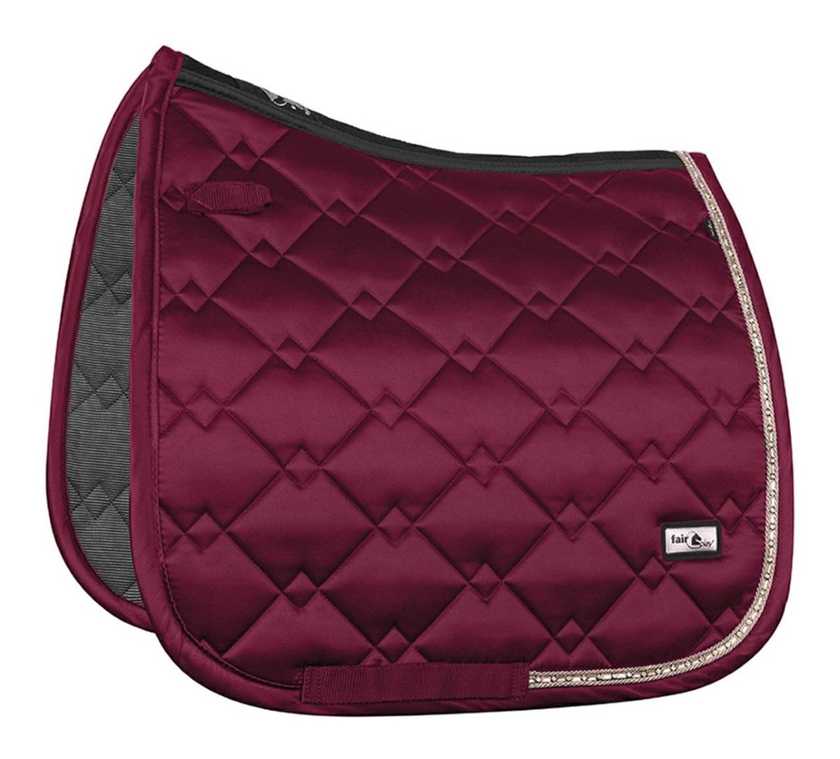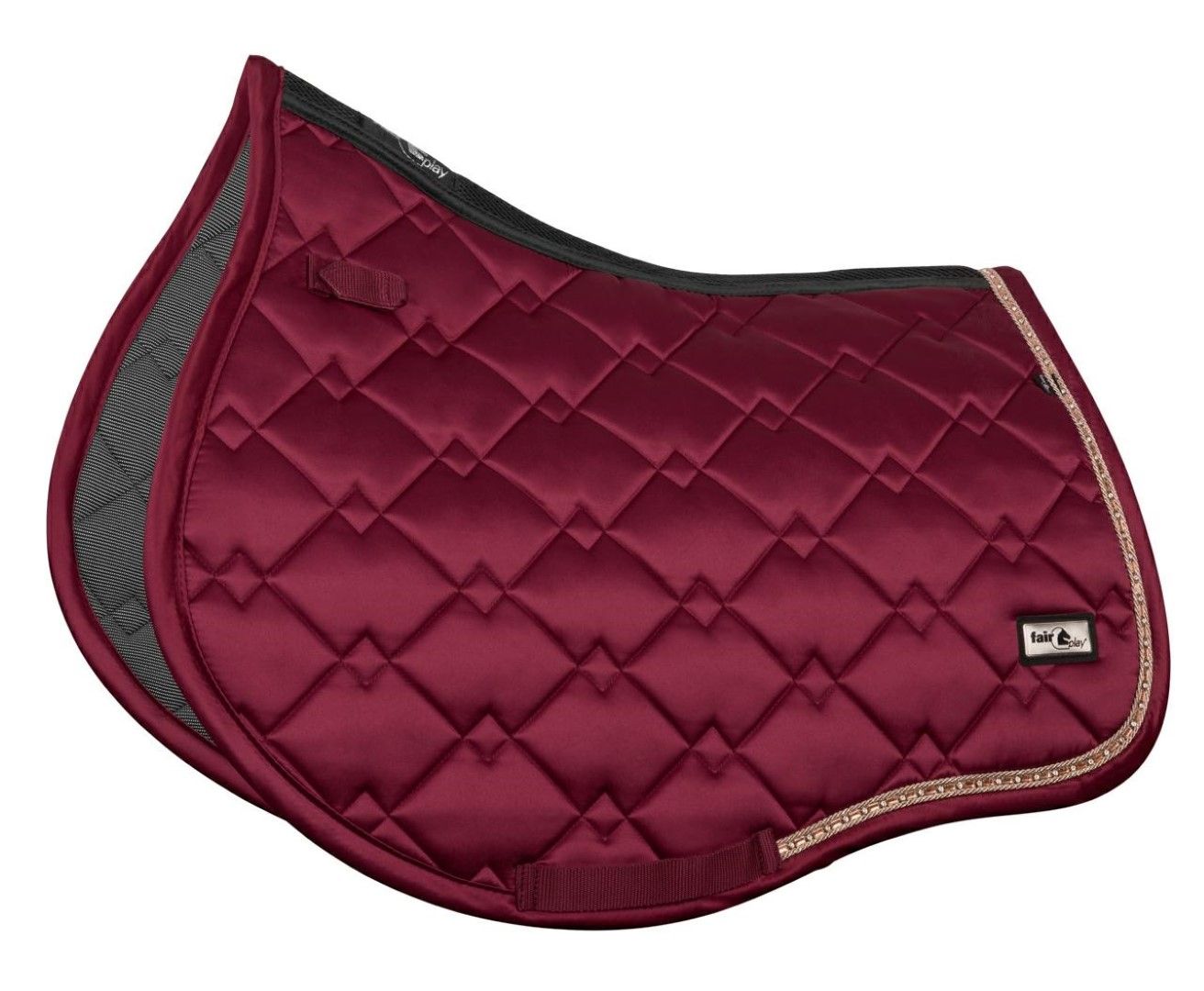 Chique satijnen dekje van Fair Play van hoge kwaliteit! Het dekje heeft een mooi patroon en is gedecoreerd met een dubbele crystallen bies. Daarnaast heeft het een open ruggegraat met 3D air mesh voor een verhoogde ventilatie en heeft het een voering met speciaal CERAMIC-tech™ materiaal voor een verhoogde doorbloeding en spierherstel.