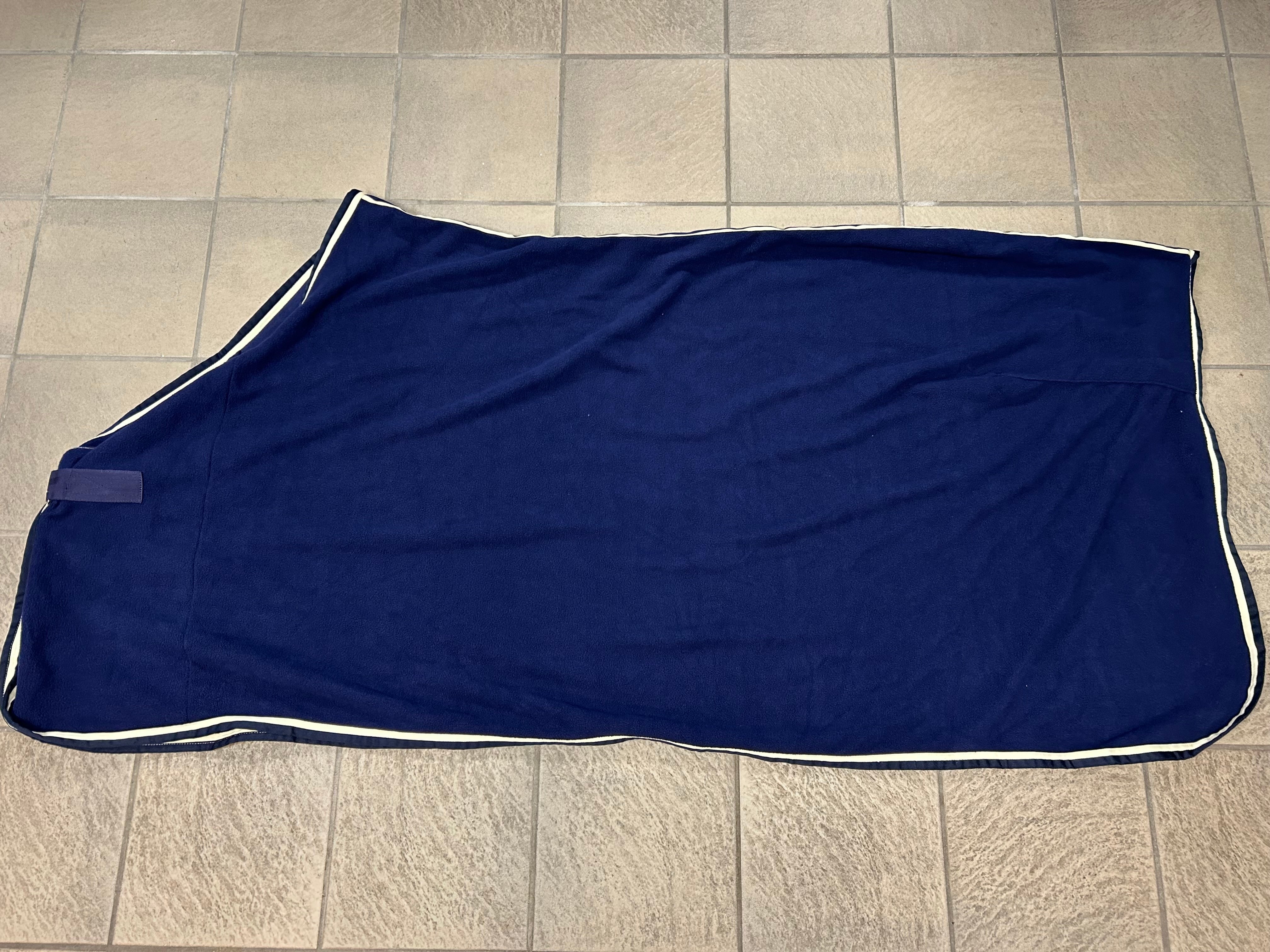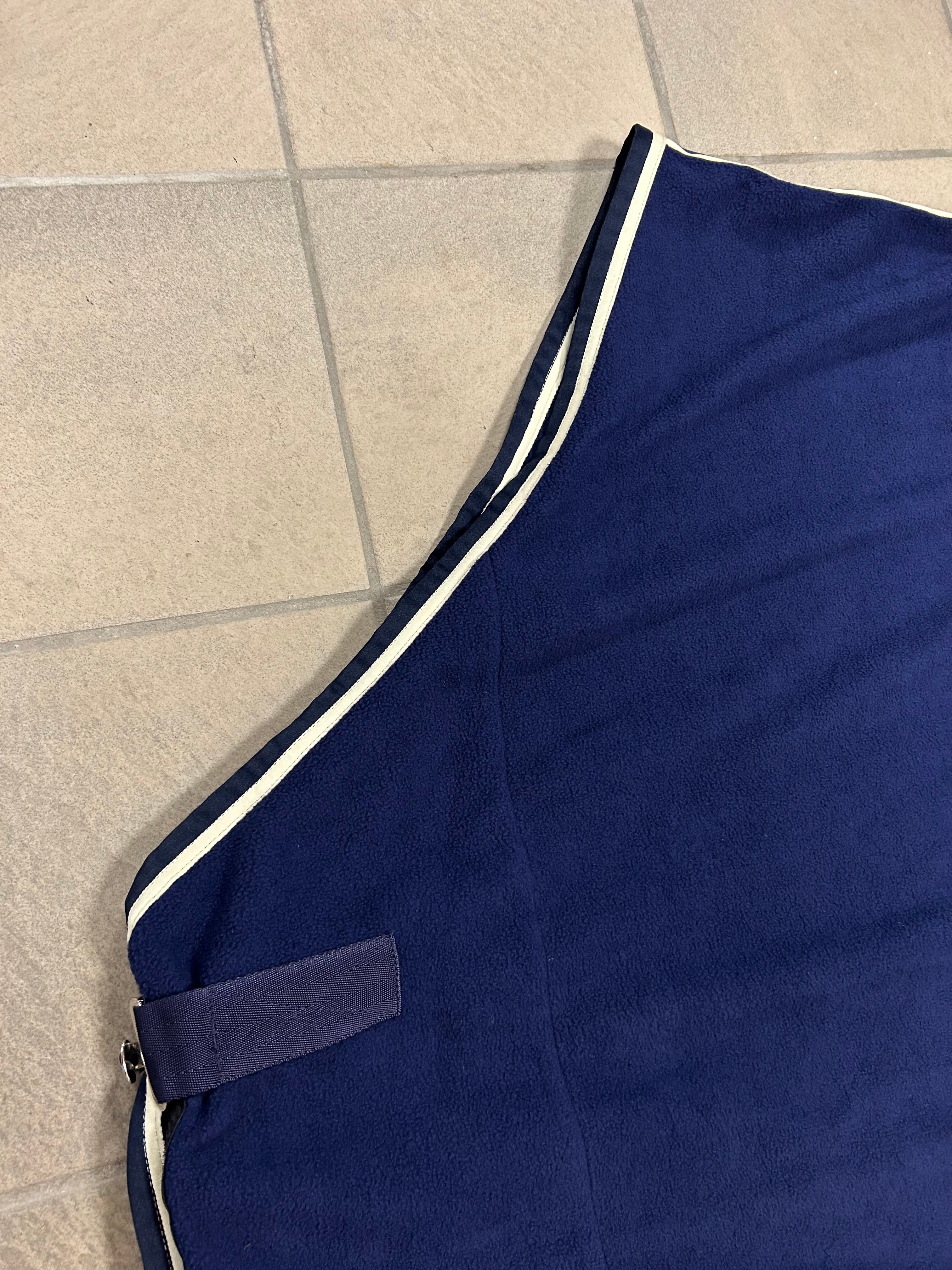 Deze eenvoudige en stijlvolle fleece deken in blauw is perfect voor dagelijks gebruik. Voorzien van een stevige staartriem voor een goede pasvorm. Let op: deze deken wordt geleverd zonder buiksingels. Ideaal voor op stal of als lichte transportdeken – praktisch en elegant!