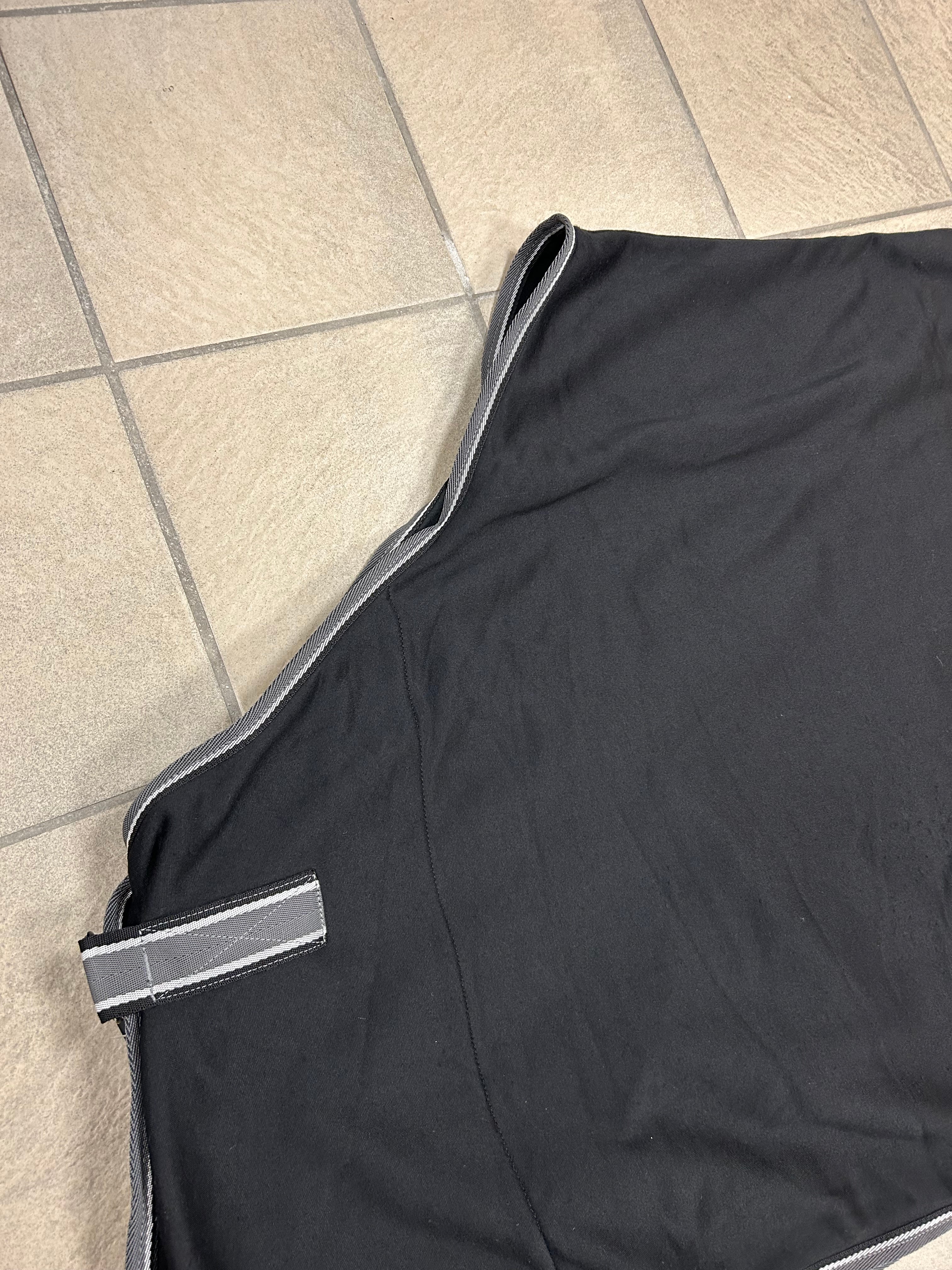 Deze stijlvolle zwarte fleece deken combineert comfort en veelzijdigheid. Uitgerust met een stevige staartriem en afneembare buiksingels, biedt deze deken een veilige en flexibele pasvorm. Perfect voor gebruik op stal, na een training of tijdens transport – een tijdloze en praktische keuze voor elke gelegenheid!
