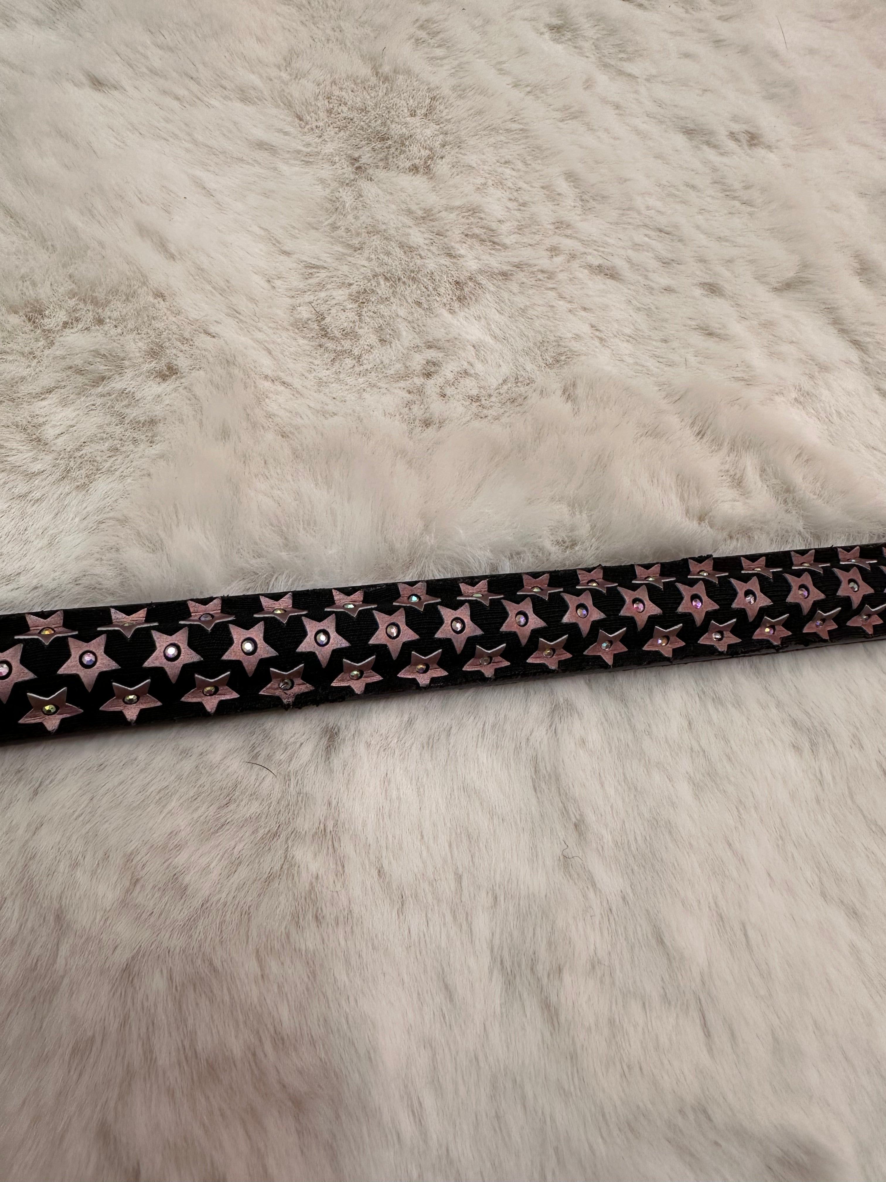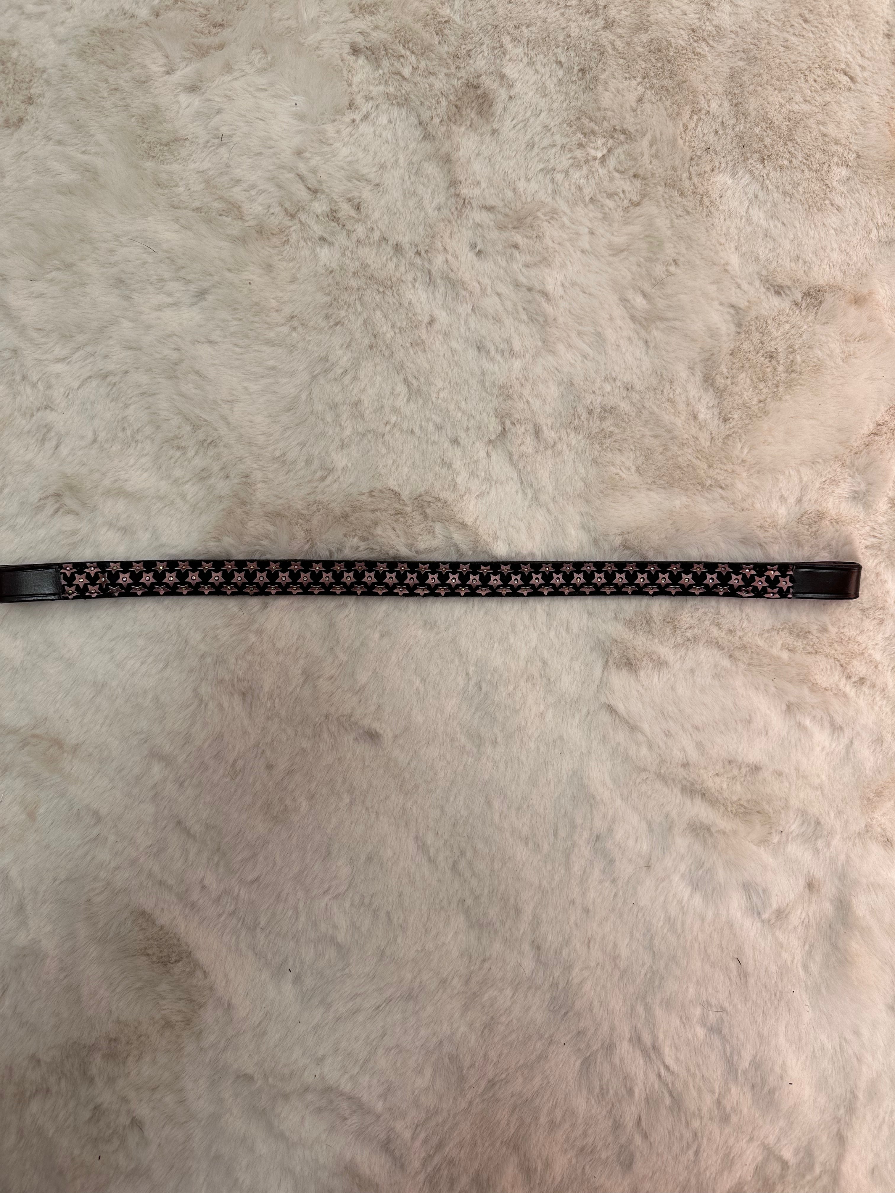Deze stijlvolle frontriem is versierd met schitterende bling steentjes in een elegante golfvorm. Het voegt een vleugje glamour en verfijning toe aan het hoofdstel, terwijl het een subtiele, maar opvallende uitstraling heeft. Perfect voor paardenliefhebbers die hun rijuitrusting willen verfraaien met een luxueuze, moderne touch.