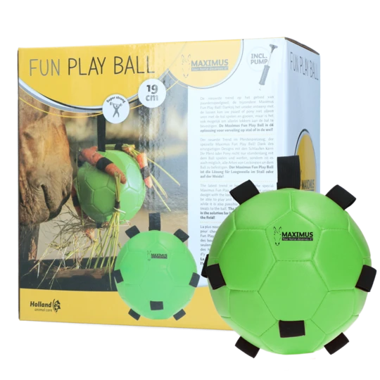 De bal kan makkelijk worden opgehangen in de stal of weide via de bovenste lus. De bevestigde elastieken aan de Maximus Fun Play Ball bieden de mogelijkheid om hooi, gras of andere snacks aan de bal te bevestigen. Dankzij de lus en elastieken is het extra makkelijk voor je paard of pony om de Fun Play Ball op te pakken. Daardoor gegarandeerd veel speelplezier en uitdaging!