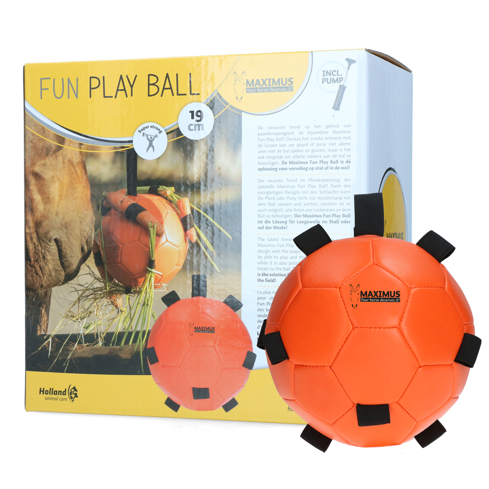 De bal kan makkelijk worden opgehangen in de stal of weide via de bovenste lus. De bevestigde elastieken aan de Maximus Fun Play Ball bieden de mogelijkheid om hooi, gras of andere snacks aan de bal te bevestigen. Dankzij de lus en elastieken is het extra makkelijk voor je paard of pony om de Fun Play Ball op te pakken. Daardoor gegarandeerd veel speelplezier en uitdaging!