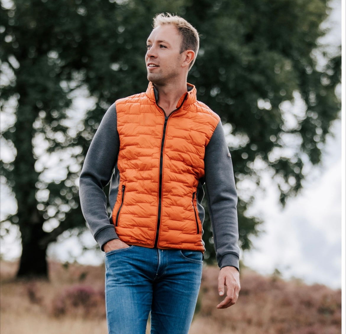 Modieus allround heren vest met gewatteerde body in quiltpatroon. Het vest beschikt over twee voorzakken met rits en één binnenzak met rits.