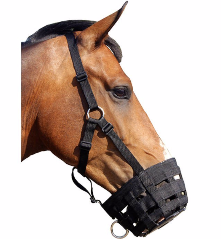 Sommige paarden mogen vanwege zwaarlijvigheid of een medische reden maar beperkt gras eten. Met een graasmasker kan het paard gewoon met zijn kuddegenoten de weide in,