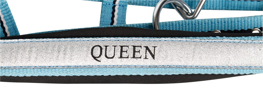 Halster bij passend bij het halster Foal, dubbel verstelbaar op het hoofd en op de kin, neopreen onderlegd, zilver- of rosegoudkleurige band op de neus met QUEEN, inclusief halstertouw