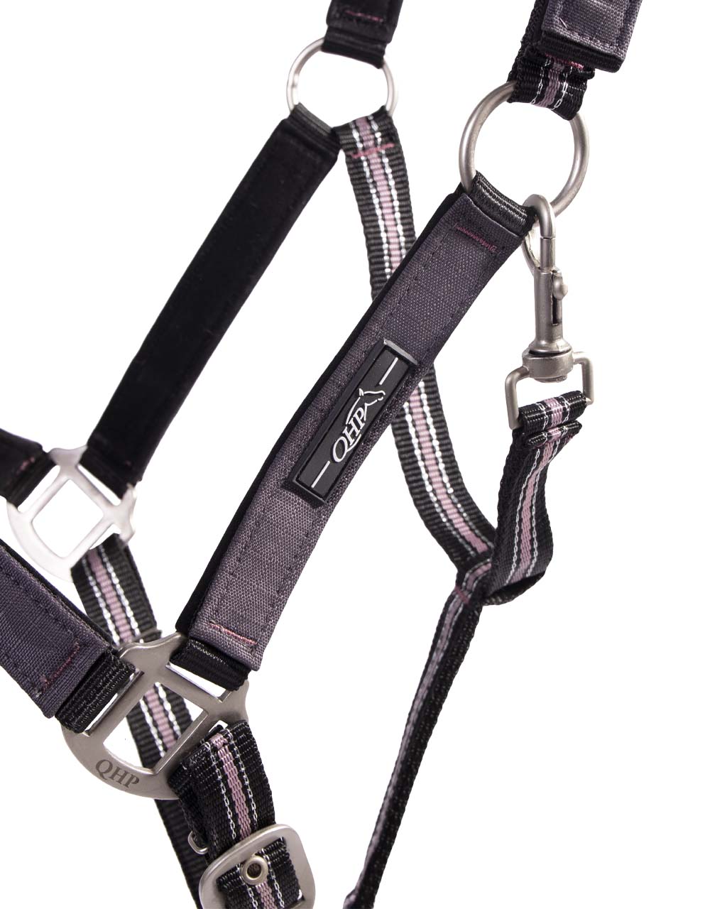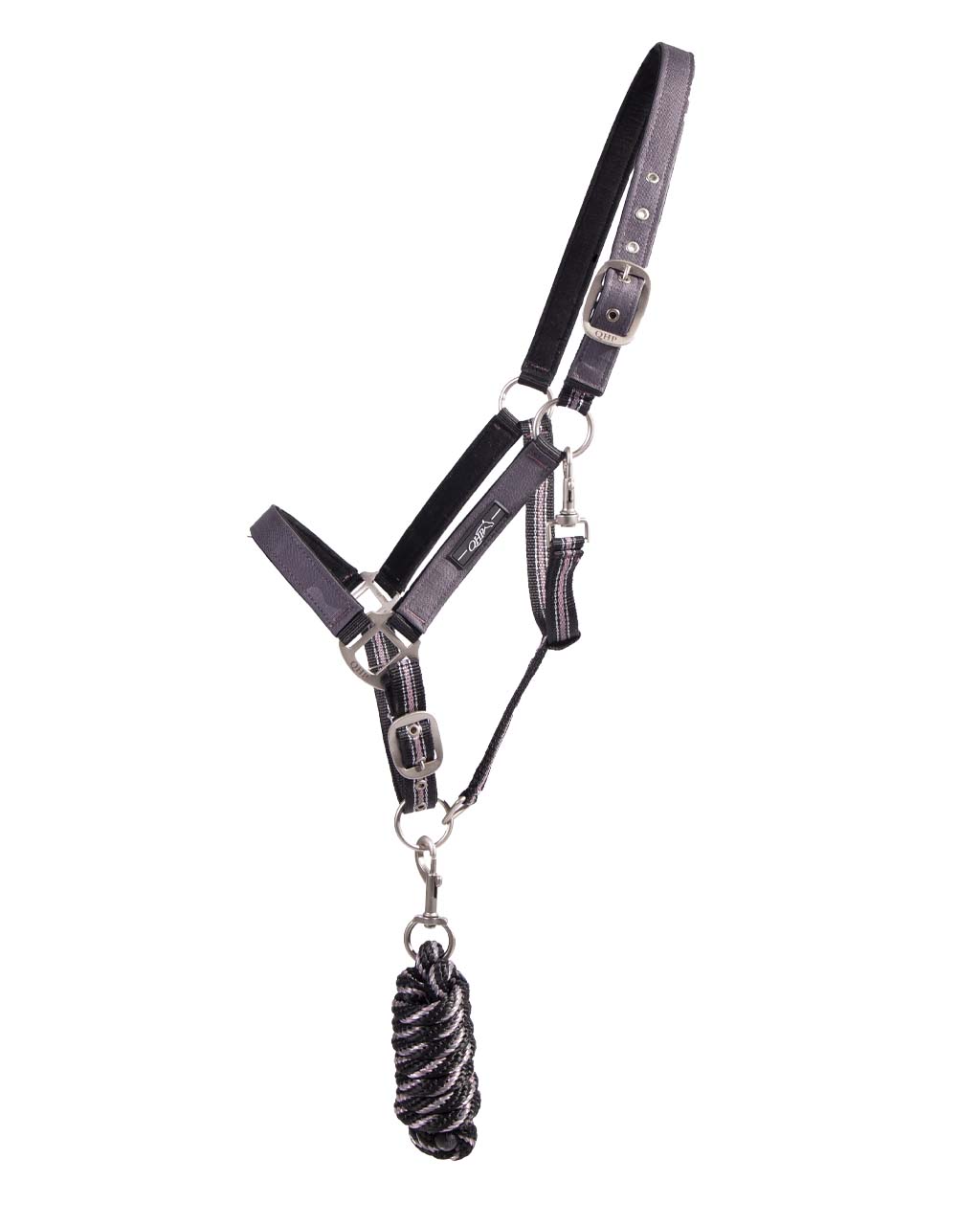 Gevoerd halster gedecoreerd met een opvallend patroon. Voorzien van luxe zwart metalen fournituren. Geleverd met een bijpassend gekleurd touw en een herbruikbare draagtas met rits.