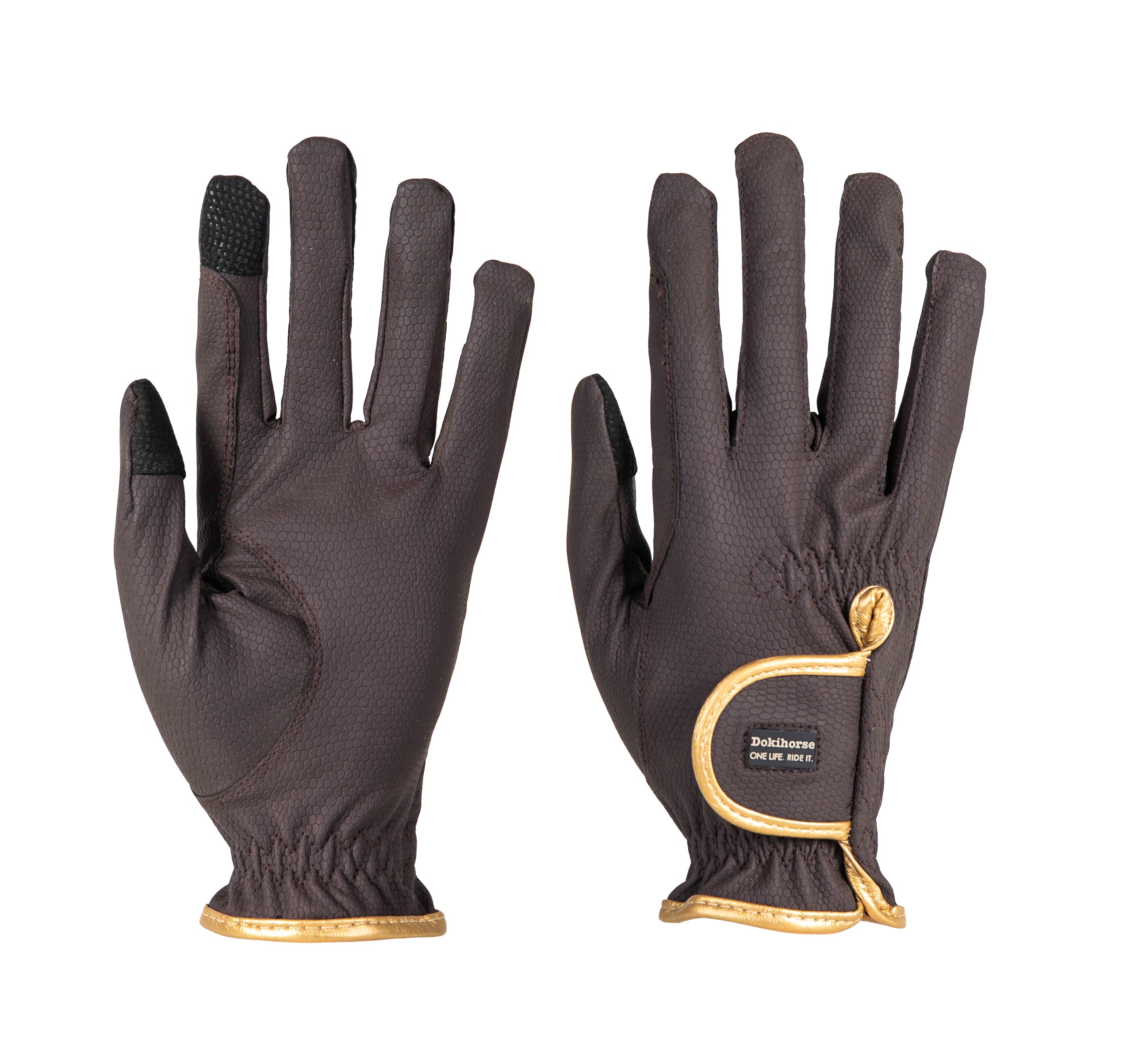 De handschoen is gemaakt van soepel synthetisch leer en heeft handige verdikking op de wijsvinger en duim om je telefoon ook met de handschoenen te kunnen bedienen. Voorzien van Dokihorse logo.