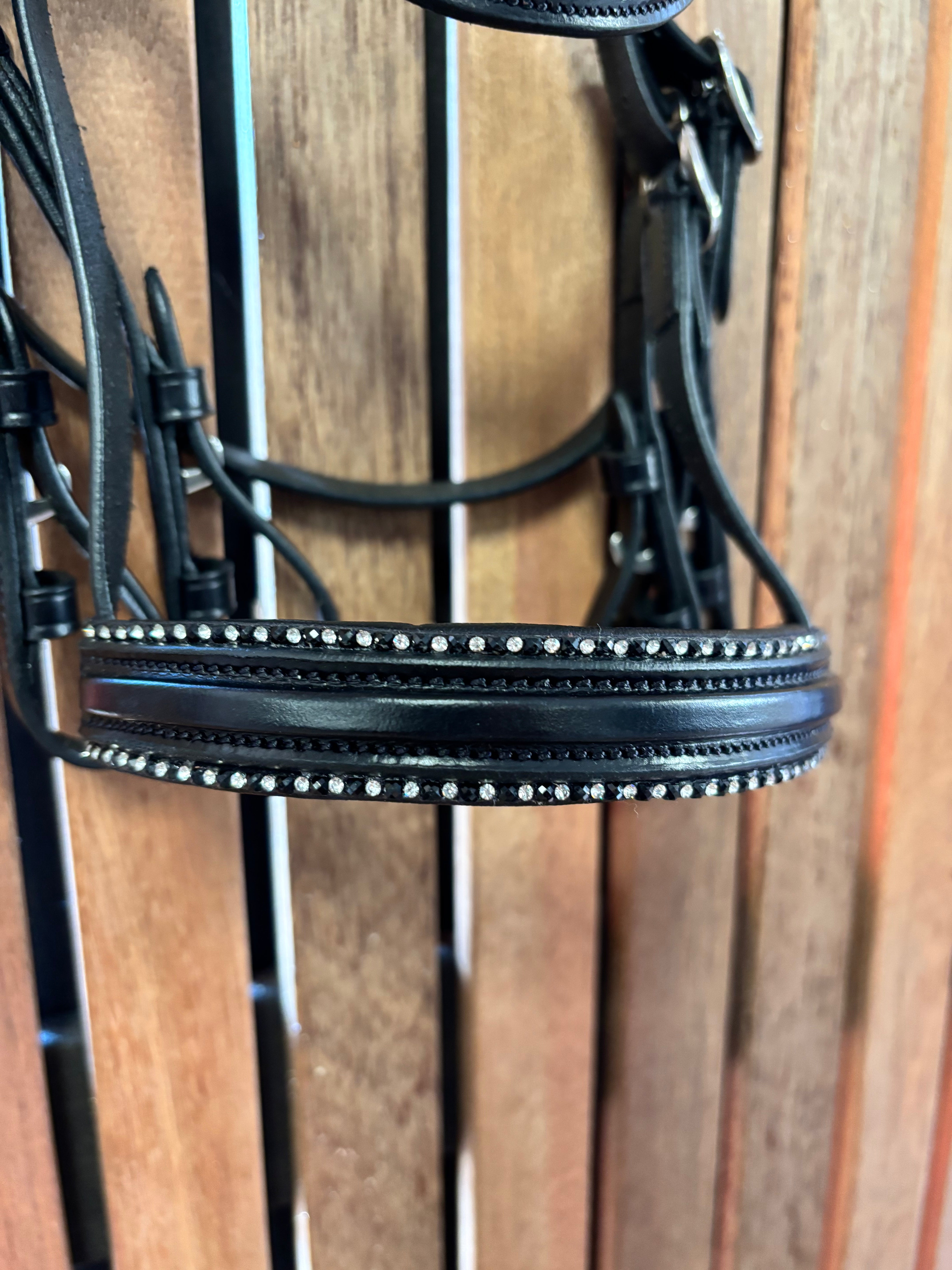• Voorzien van een mooie frontriem met zilveren en groene steentjes