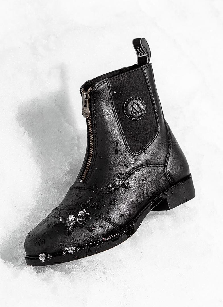 Deze waterafstotende, warm gevoerde en veganistische rijlaarzen maken deel uit van de onmetelijk populaire Veganza-serie van Mountain Horse, waarbij het leer is vervangen door een veganistisch kunstleer van zeer hoge kwaliteit. Het zachte, soepele materiaal volgt niet alleen je bewegingen op een optimale manier, maar is ook aangevuld met een vochttransporterende binnenzijde om echt de best mogelijke comfort te bieden.