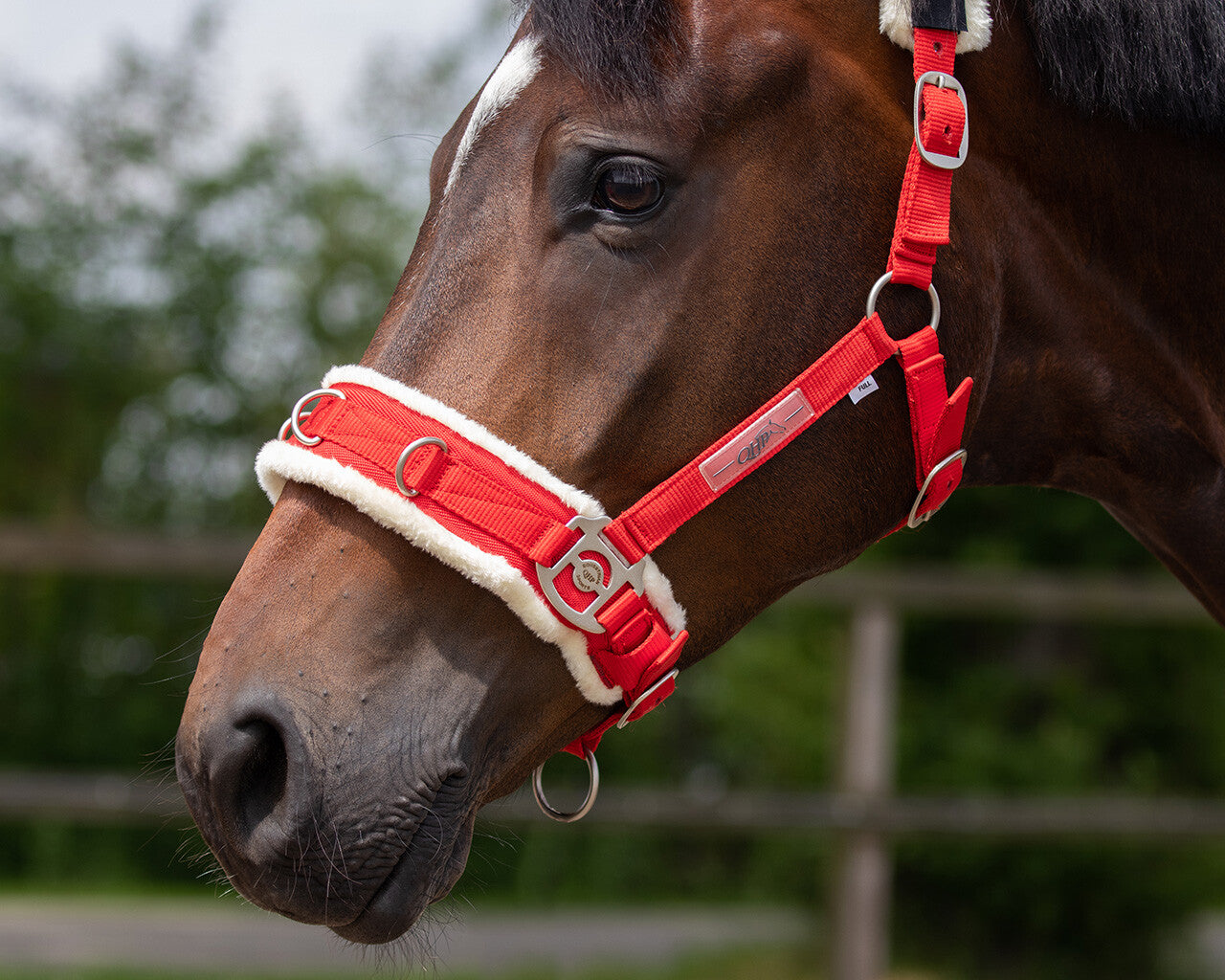 Kaptoom met 3 metalen D-ringen aan de bovenzijde van de neusriem. Een kaptoom kan worden gebruikt om te longeren of is te gebruiken met grondwerk. Op 3 punten verstelbaar en voorzien van bontjes onder de neusriem en het kopstuk.