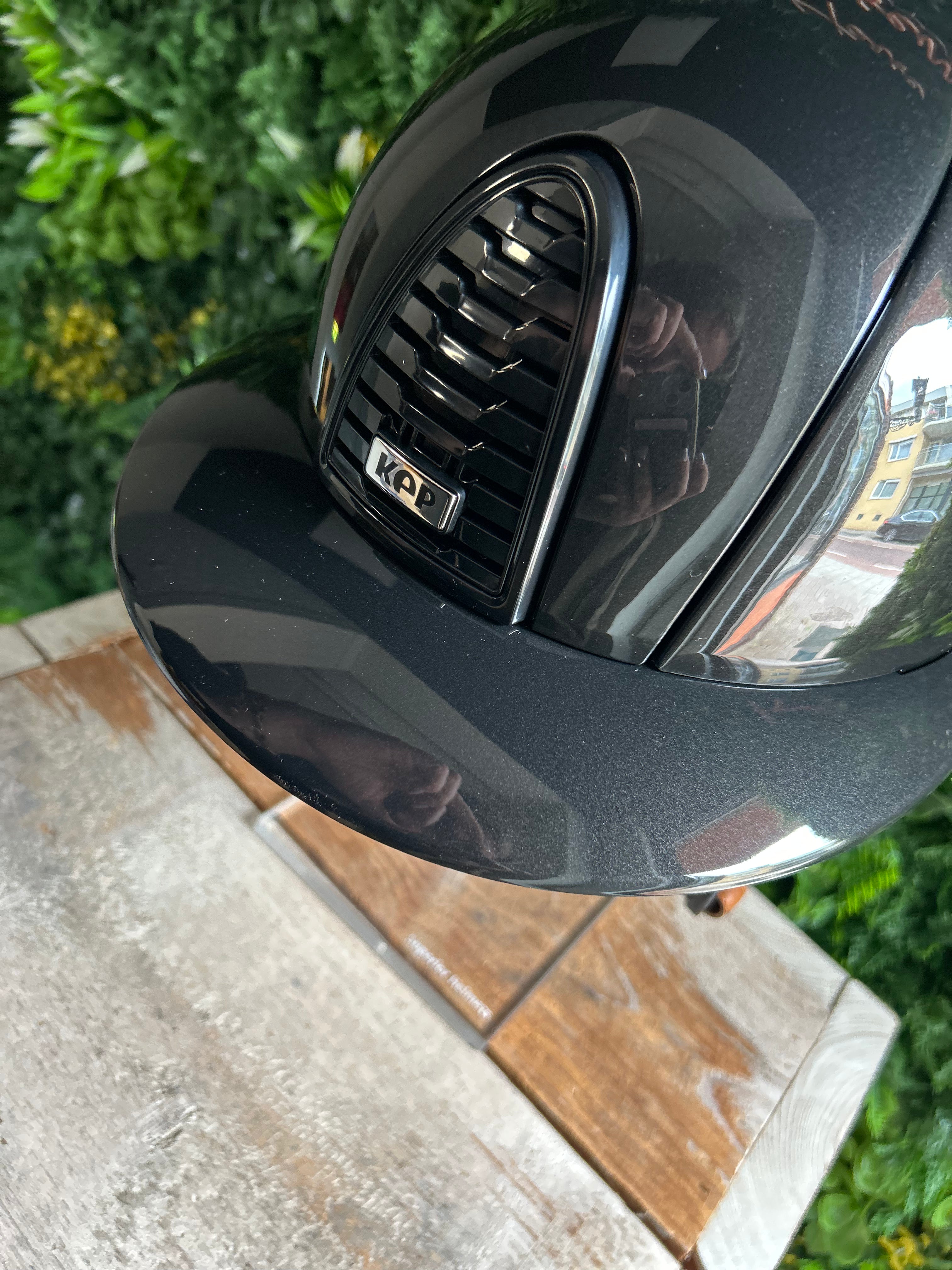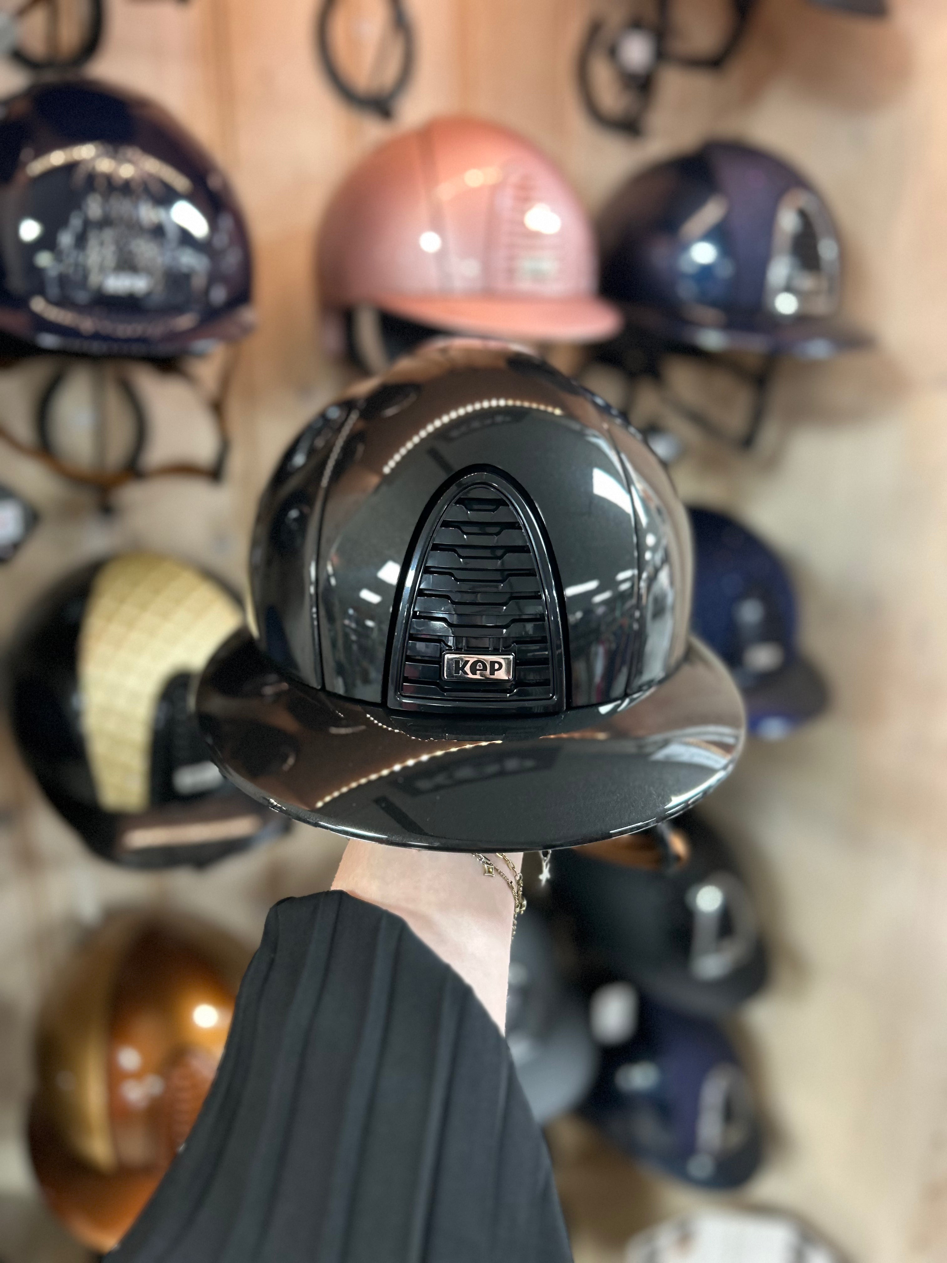 Het KEP AIR CONTROL-SYSTEEM is verbeterd met extra ventilatiespleten aan de achterkant, voor meer ademend vermogen en een betere interne temperatuurregeling. De met de hand gestikte lederen band behoudt de vijf bevestigingspunten voor een stabielere pasvorm. De nieuwe vulling, met verbeterd comfort en ademend vermogen, is gemaakt van zachte stof gemaakt van eco-groene grondstoffen. Het kan nog steeds worden verwijderd en met de hand worden gewassen of in de machine worden gewassen op 30°. Je kunt je unieke helm aanpassen met prachtige freehand airbrushing of andere technieken.