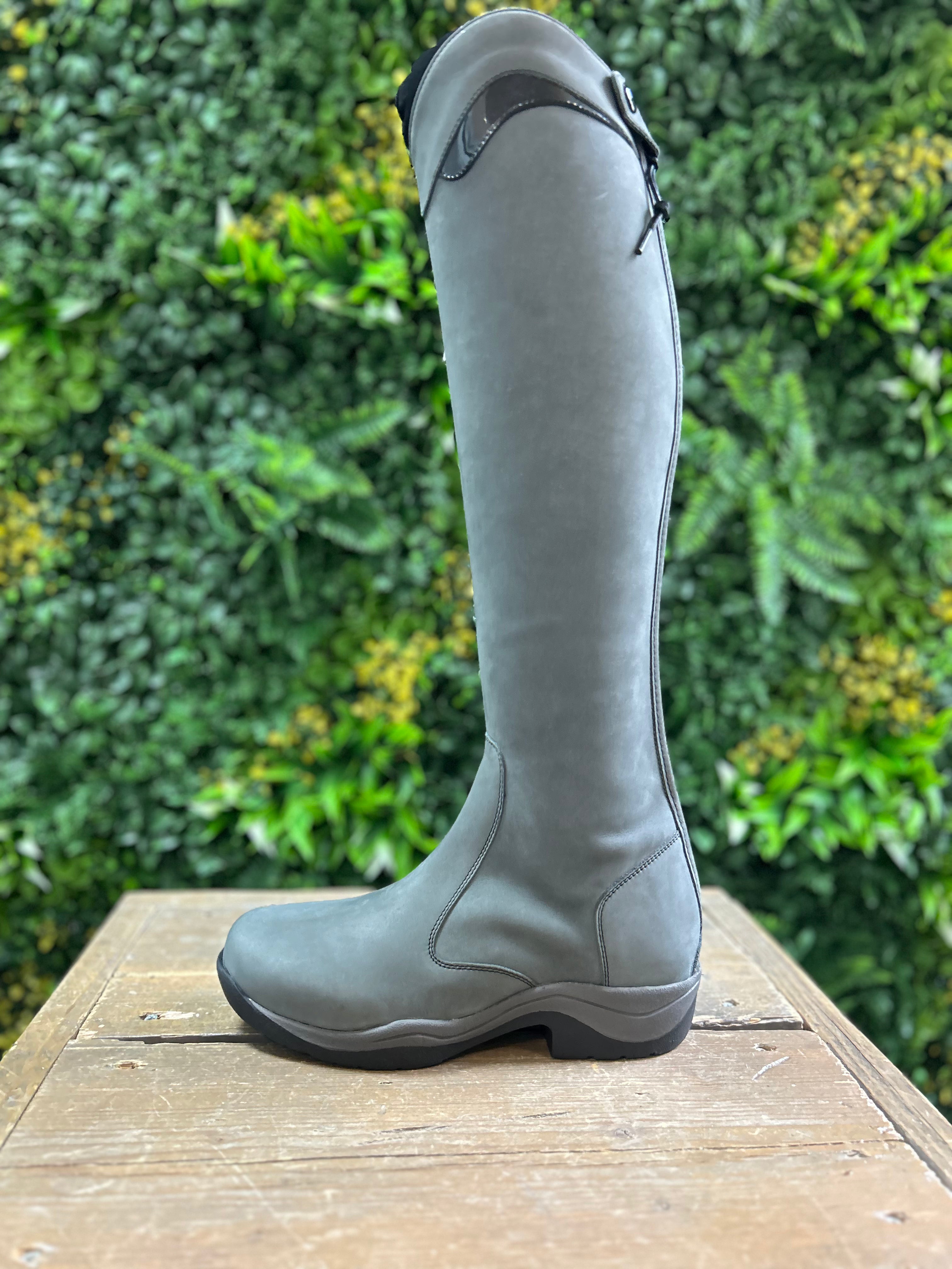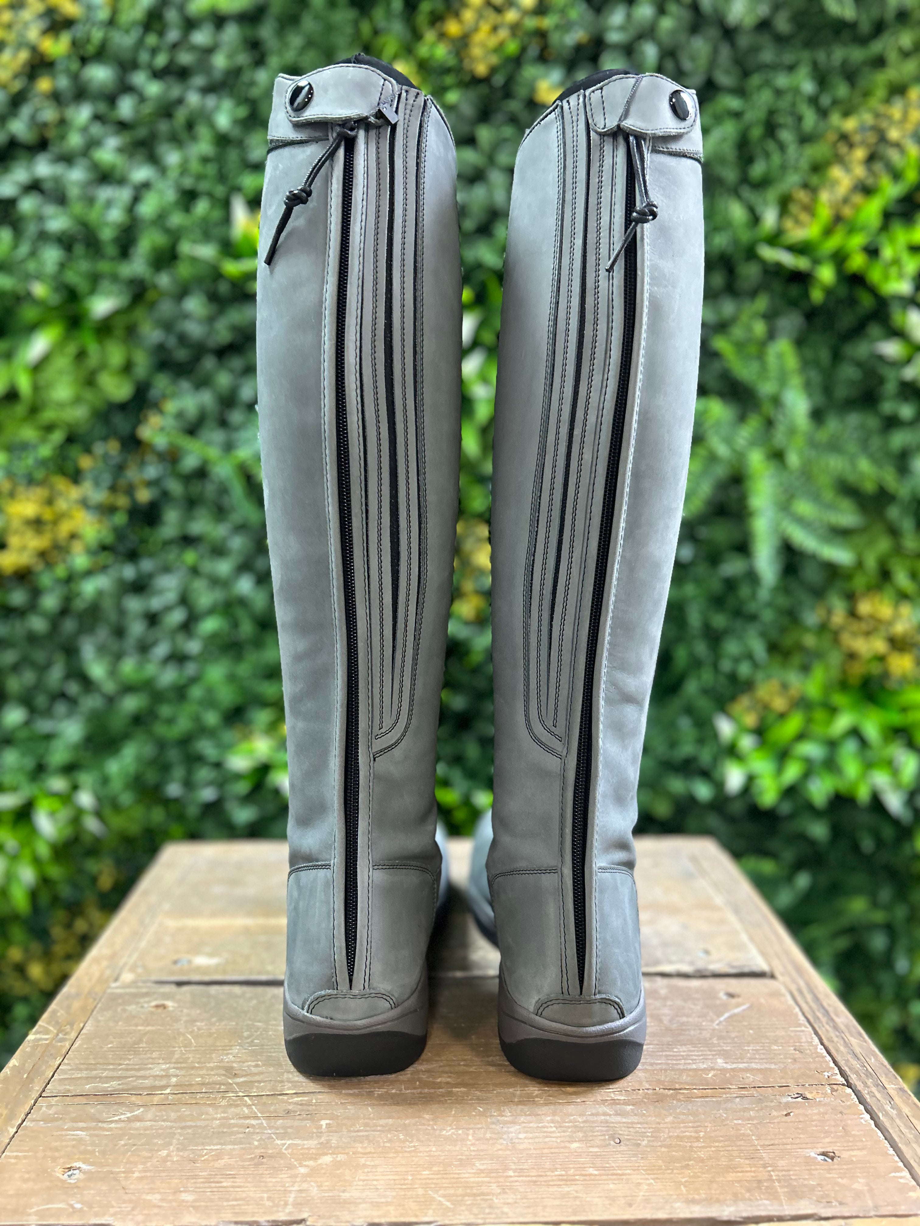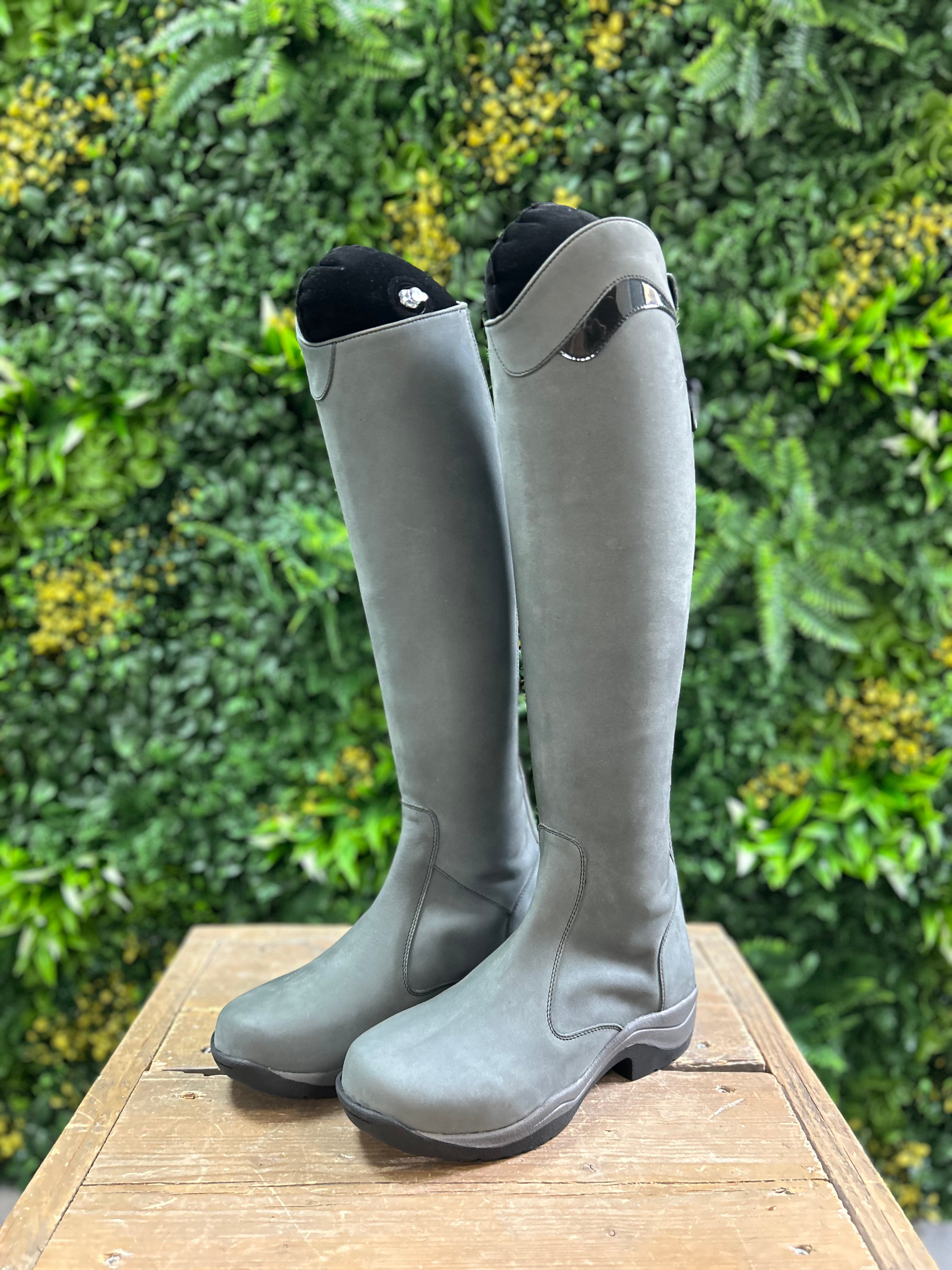Prachtige grijze nubuck leren unieke rijlaarzen.