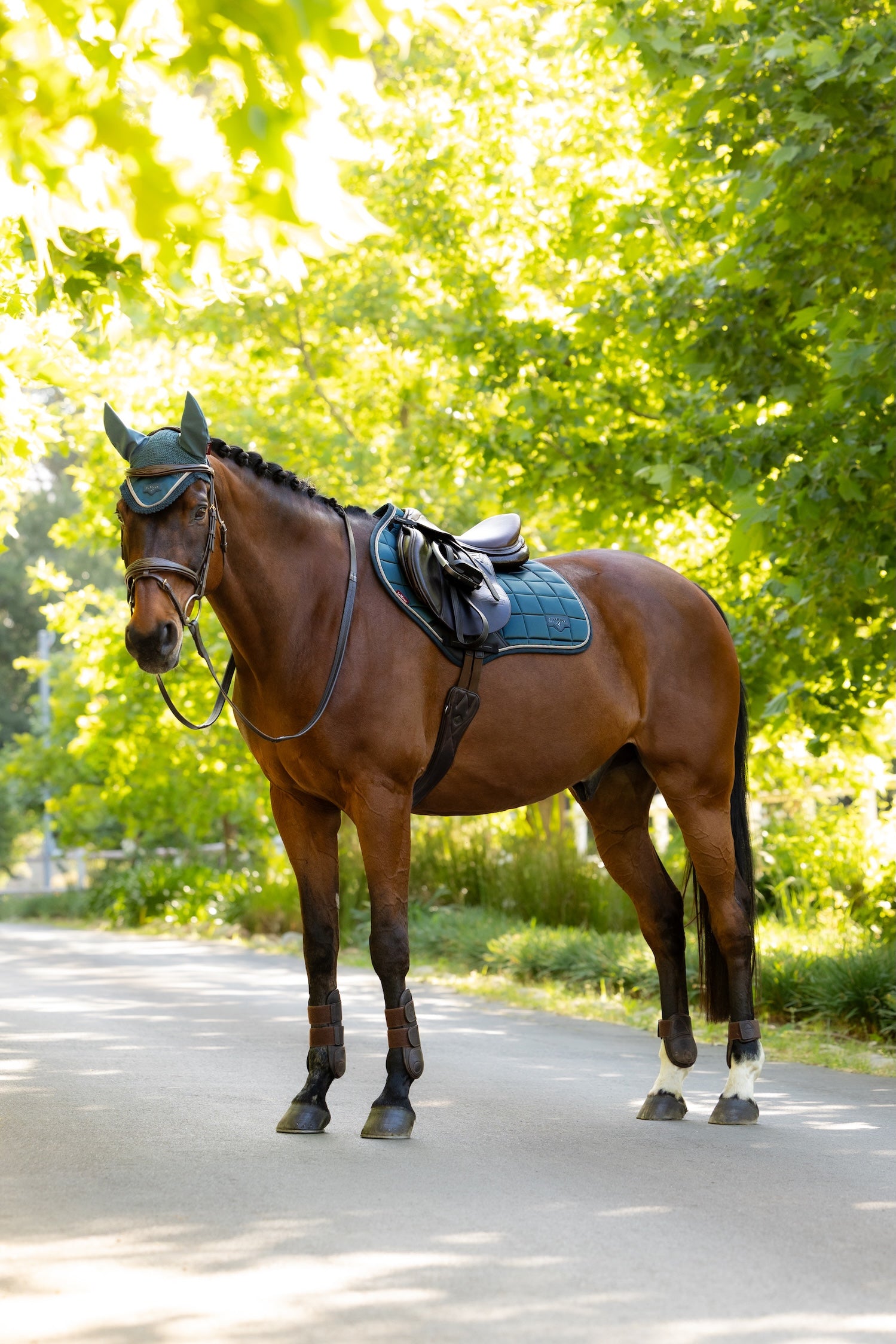 Het LeMieux Loire Classic dekje is een mooie glanzend dekje. Het dekje heeft een lederen versteviging bij de singelstoten en een metalen LeMieux embleem. Het Loire Classic zadeldek heeft een bamboo lining welke zeer zacht is voor de paardenhuid en schuurplekken voorkomt.