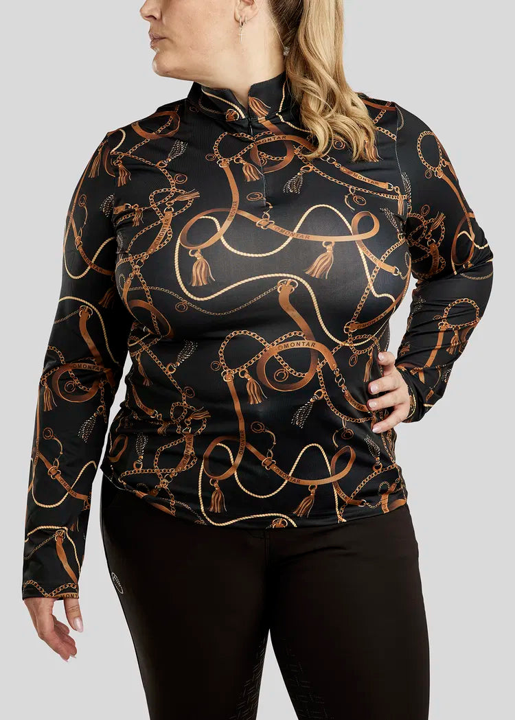 Maak kennis met het Haily Shirt – een onmisbare lange mouw voor ruiters die mode en functionaliteit moeiteloos combineert. Versierd met een elegante print van bitten en voorzien van een subtiele ritssluiting, geeft deze top een moderne draai aan klassieke ruiterstijl. Ervaar de uitzonderlijke stretch en hoogwaardige comfort die het Haily Shirt te bieden heeft. Voeg een vleugje elegantie toe aan je rijoutfit met de perfecte balans tussen stijl en praktisch gebruiksgemak.