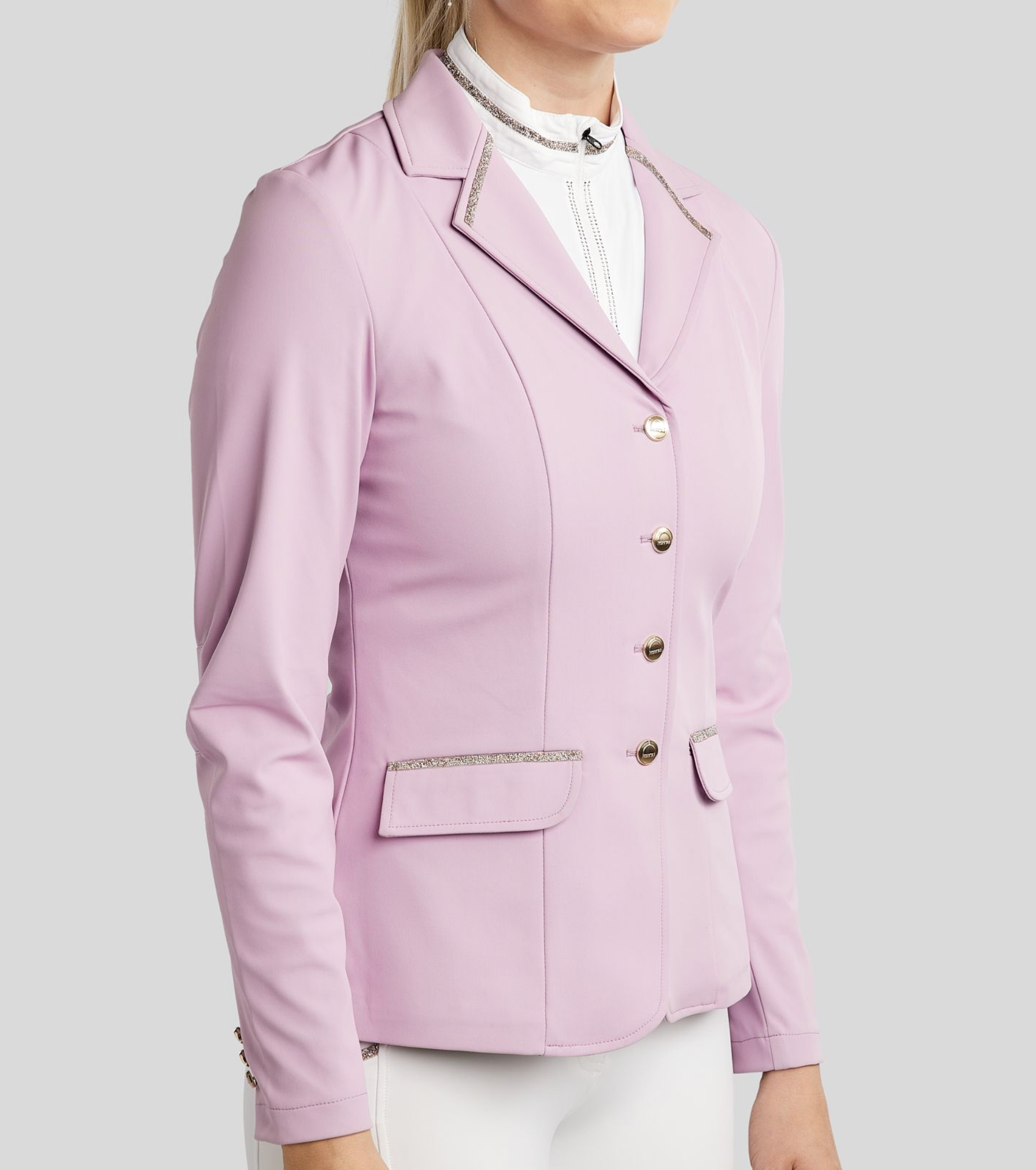 Het MoLila wedstrijdjasje combineert een klassieke uitstraling met moderne elegantie en functionaliteit. Dit jasje is ontworpen voor de ruiter die in de ring een verfijnde en exclusieve look wil, zonder in te leveren op comfort of bewegingsvrijheid.