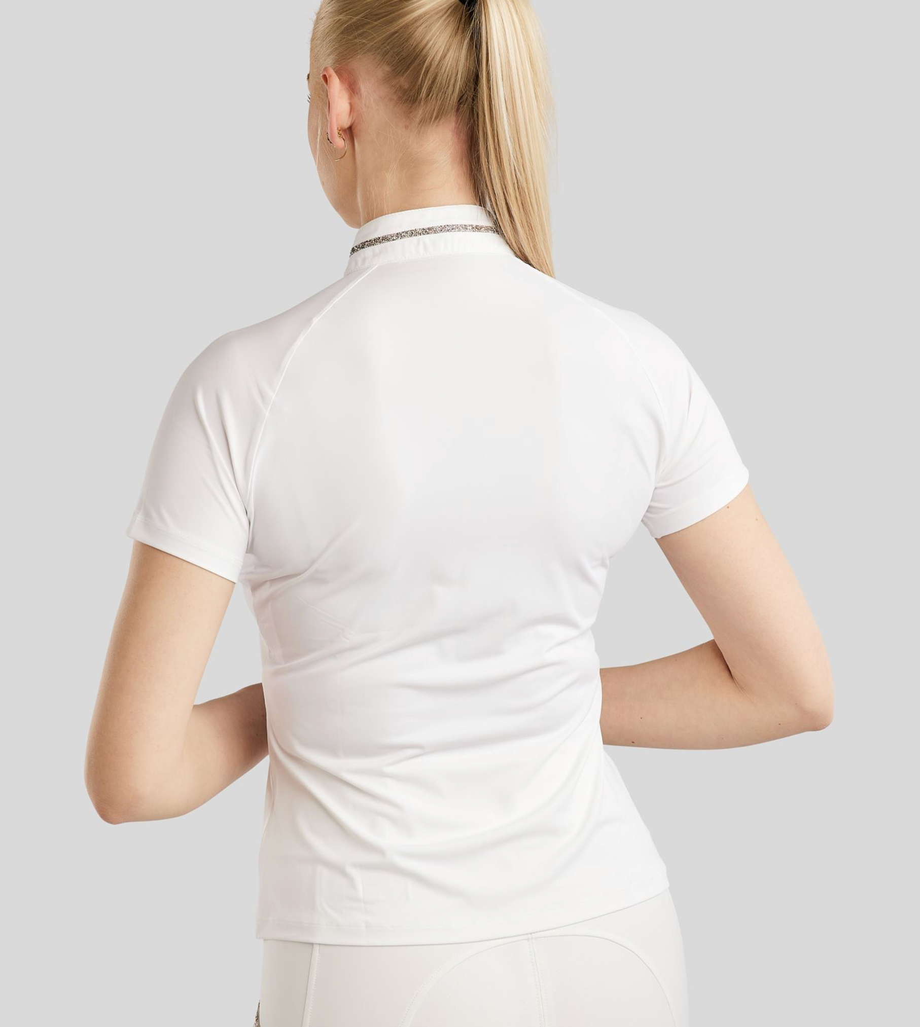 Het MoLila wedstrijdshirt combineert een vrouwelijke, verfijnde uitstraling met optimaal draagcomfort en functionaliteit. Dit shirt is ontworpen voor de amazone die in de ring een elegante en exclusieve look wil uitstralen, en is daarmee perfect voor zowel trainingen als wedstrijden.