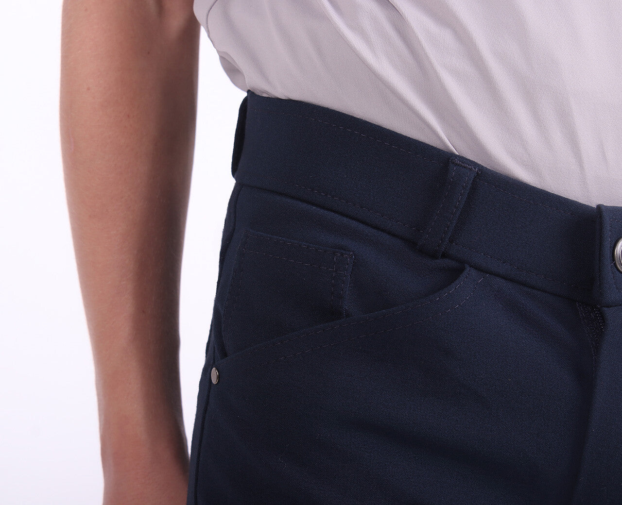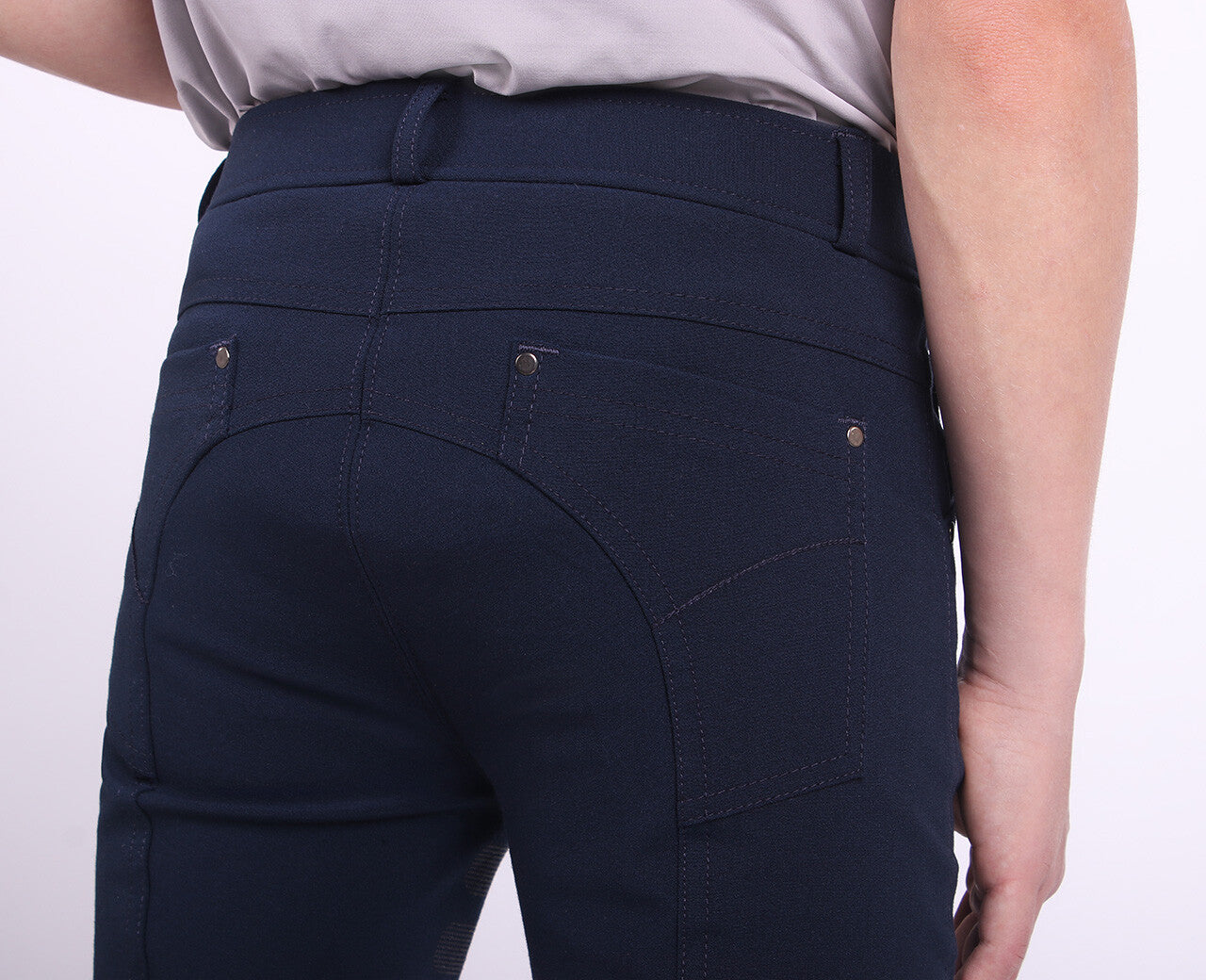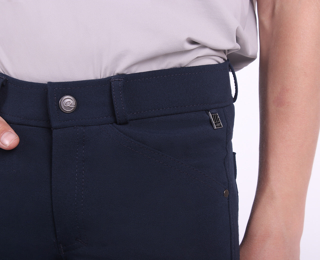 Rijbroek met een sportief anti-slip patroon op de binnenkant van de benen. De rijbroek is voorzien van twee steekzakken aan de voorkant, waarvan één is voorzien van een coin pocket. Ook de achterkant heeft de broek twee steekzakken met subtiele stiksels.