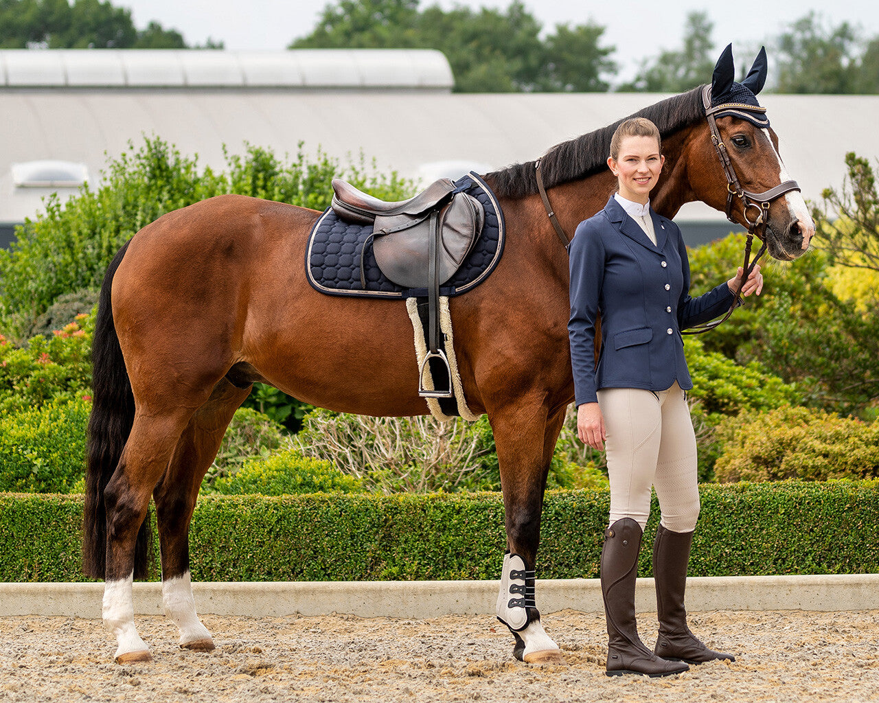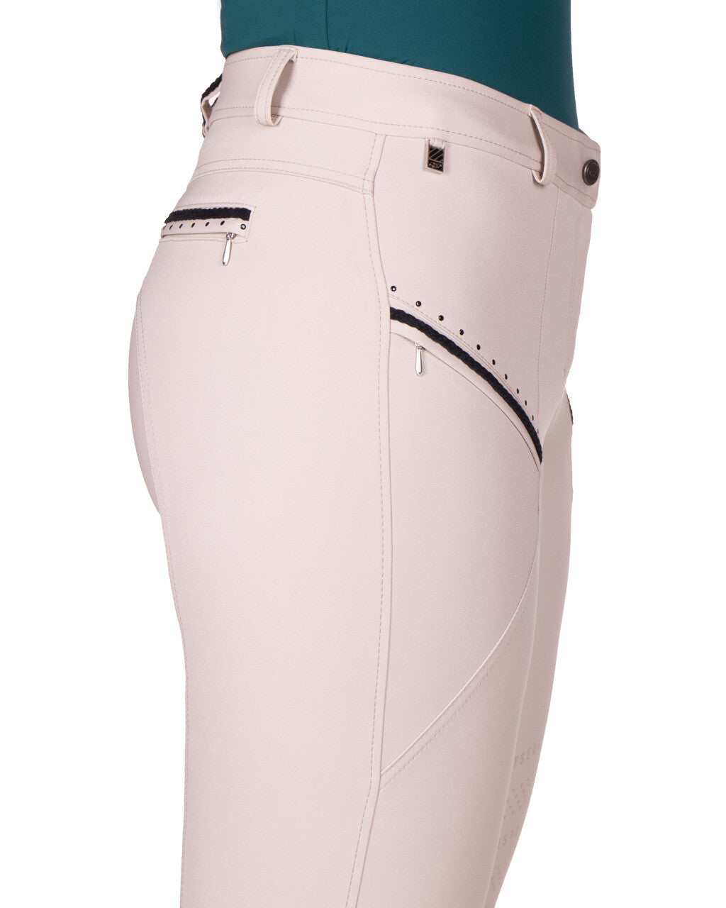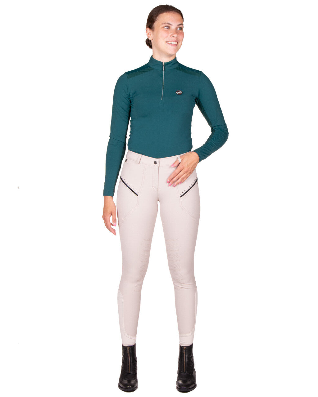Rijbroek Jace heeft een mooie fit. Een comfortabele stof en de laatste trends komen samen in deze fijne rijbroek. De zwarte details, de kniegrip, maar ook de fijne stof zorgen voor een heerlijke outfit deze zomer!