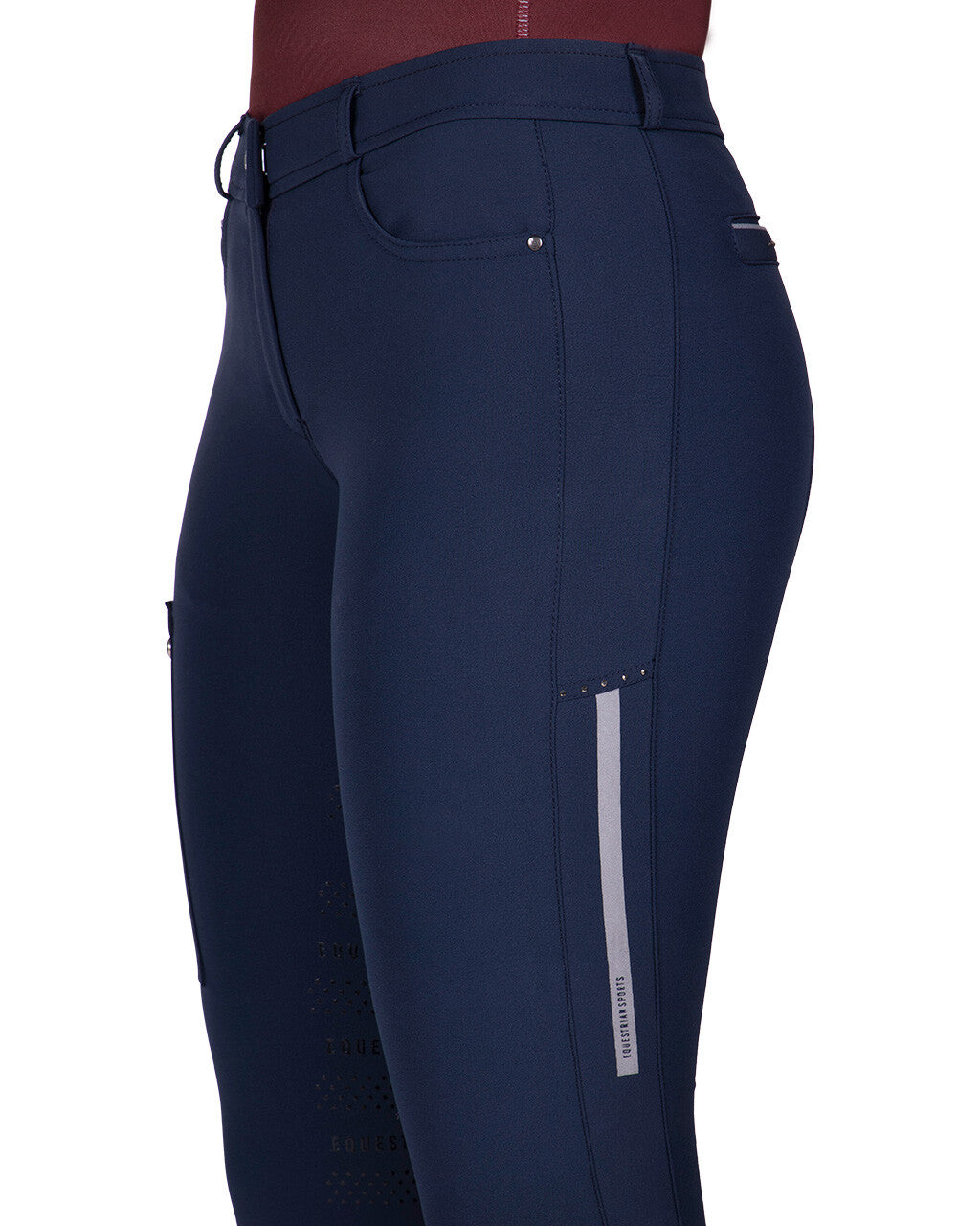 Hoe fijn, deze rijbroek met reflecterende details. Het is een lichtgewicht rijbroek, sneldrogend en voelt zacht aan.