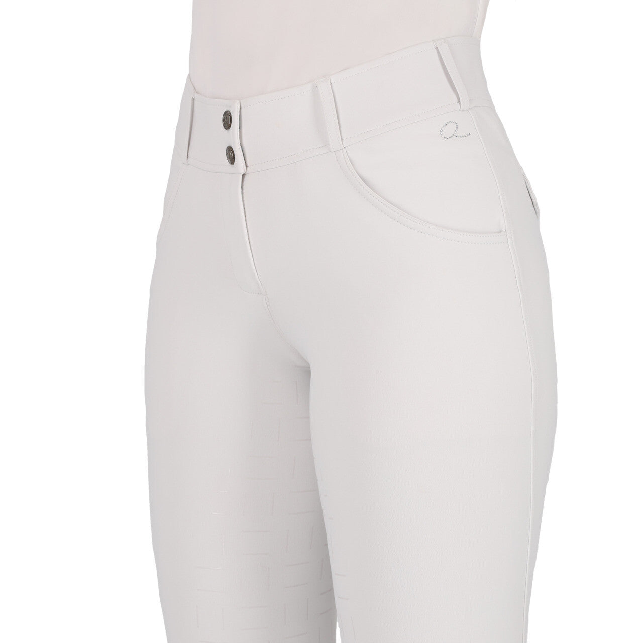 Rijbroek Vaila is gemaakt van een zachte en elastische 4-way stretchstof die goed ademt en prettig aanvoelt. De stof is vormvast en schijnt niet door. De broek heeft een medium full grip zitvlak voor extra stevigheid in het zadel en een mesh beensluiting die mooi aansluit.