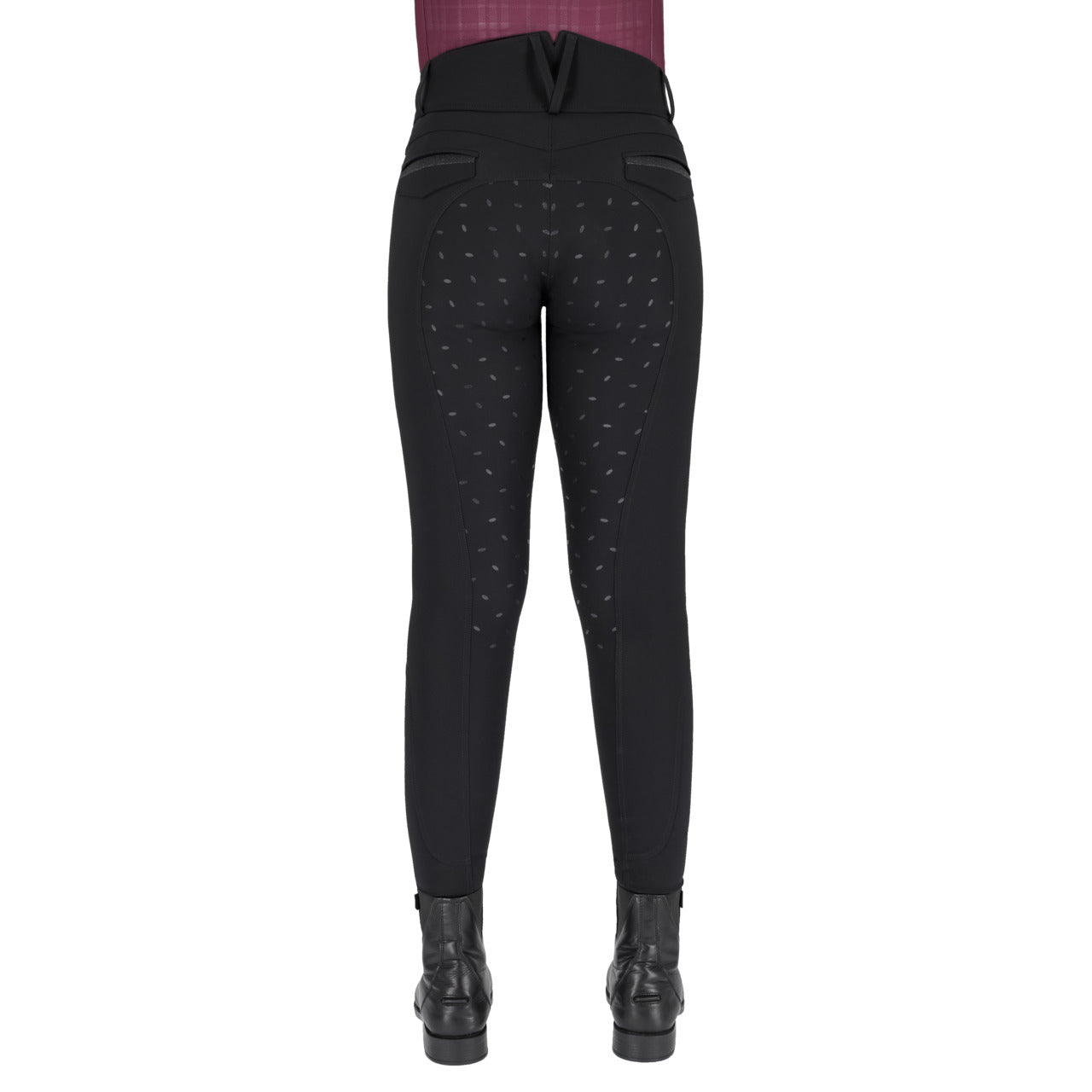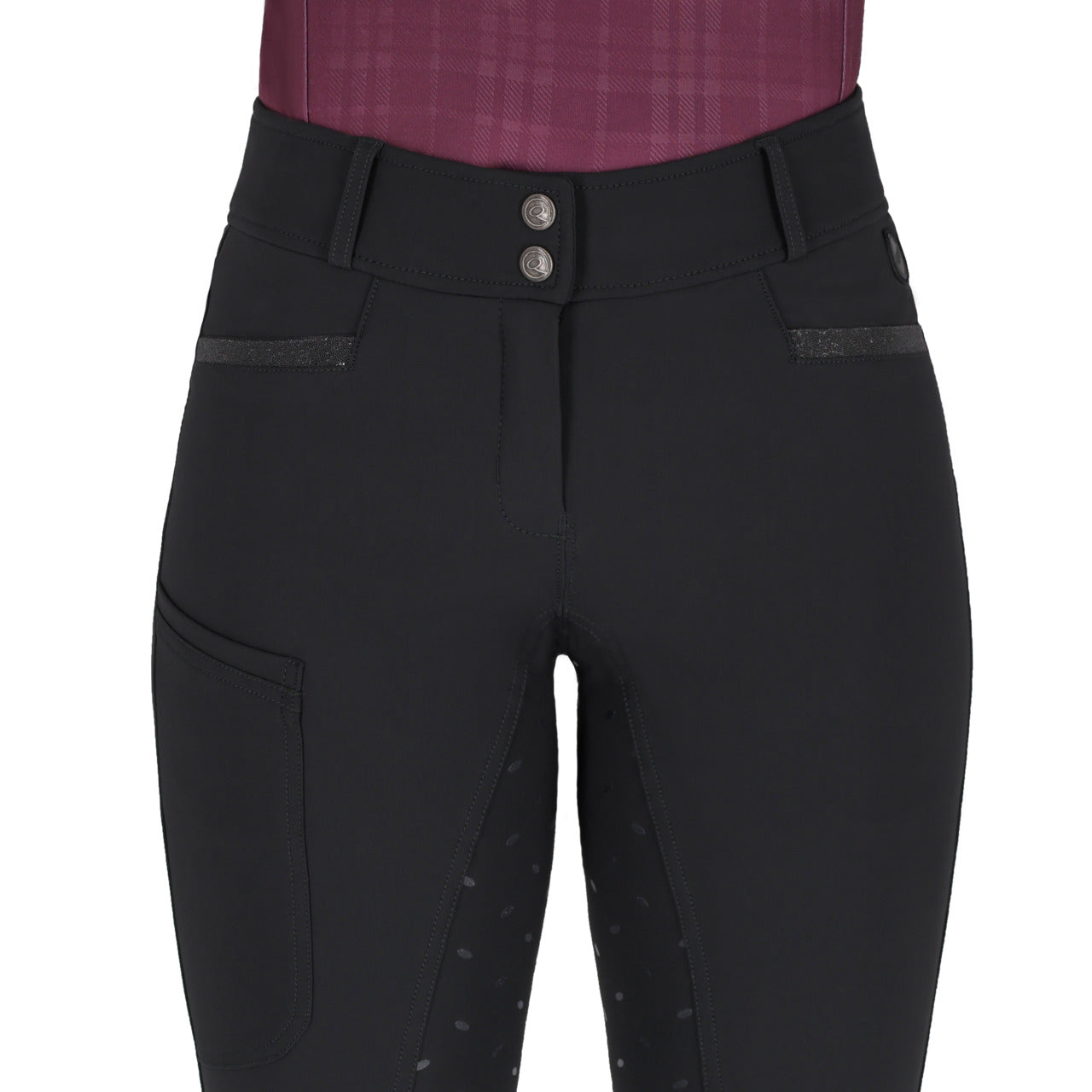 De Rijbroek Zahra uit de wintercollectie is ademend, voorzien van stretch en een hoge taille voor extra comfort. Dankzij het uitstekende vormherstel blijft hij perfect in pasvorm, zelfs na veelvuldig gebruik. Met elastische beensluitingen, full seat met medium grip en praktische steekzakken met glitterbies, is deze rijbroek ideaal voor elke training.