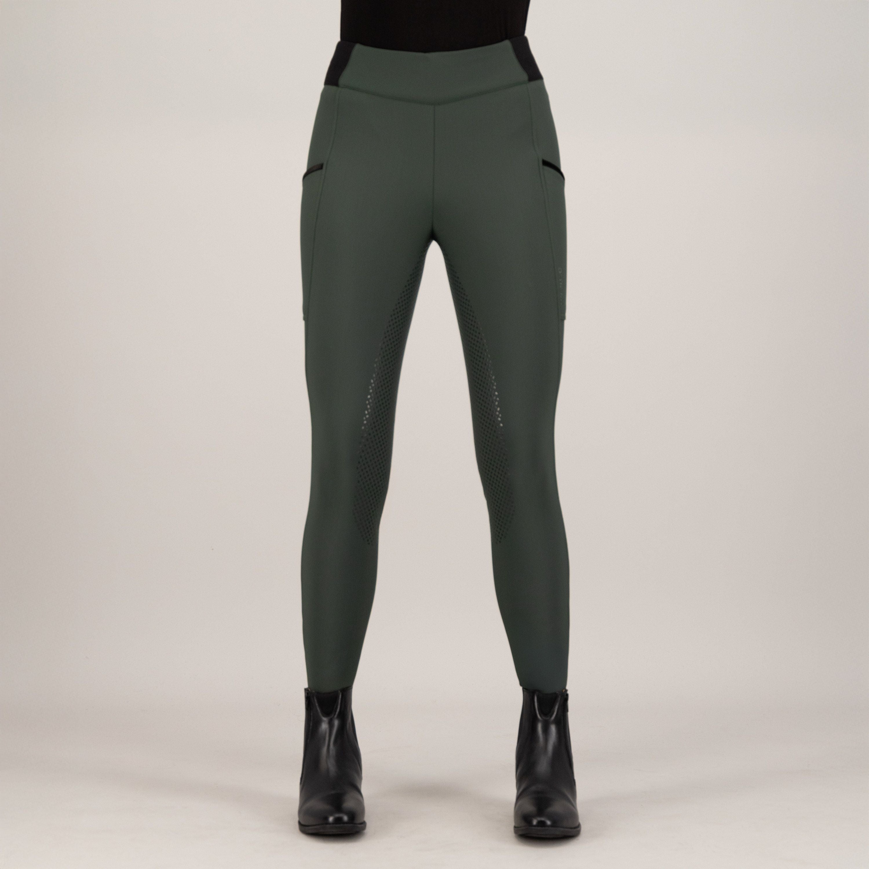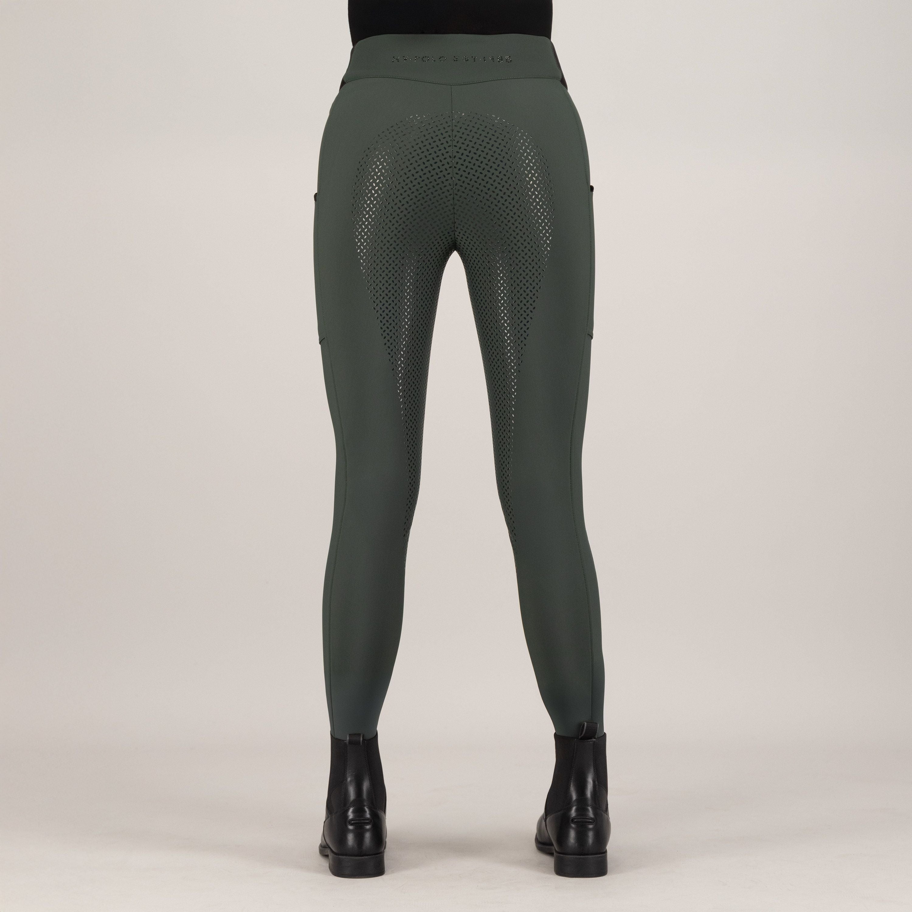 Stel je eens voor: die perfecte rijlegging die niet alleen fantastisch aanvoelt, maar je ook nog eens laat stralen in de stallen en tijdens elke rit. De HVP-Estrelle FullGrip rijlegging is precies dat! Deze rijlegging combineert moeiteloos functionaliteit met een elegante look, helemaal in de stijl van HV Polo. Dankzij de elastische inzetstukken in de tailleband zit hij als gegoten, en het HV Polo logo dat hierin is verwerkt, geeft een subtiele knipoog naar jouw passie voor de paardensport. Of je nu bezig bent met dressuur, een sprongetje waagt of gewoon geniet van een ontspannen buitenrit, de siliconen fullgrip zorgt voor optimale stabiliteit in het zadel. Aan beide zijkanten vind je handige telefoonzakken, perfect om je essentials bij de hand te houden. De linkse zak is zelfs verfraaid met een HV Polo paardenprint en sprankelende studs, terwijl een verfijnd strass-kunstwerk op de achterkant van de tailleband een vleugje glamour toevoegt. De stof is heerlijk zacht en geborsteld aan de binnenkant, super rekbaar en biedt daardoor ultiem comfort voor elke ruiter.
