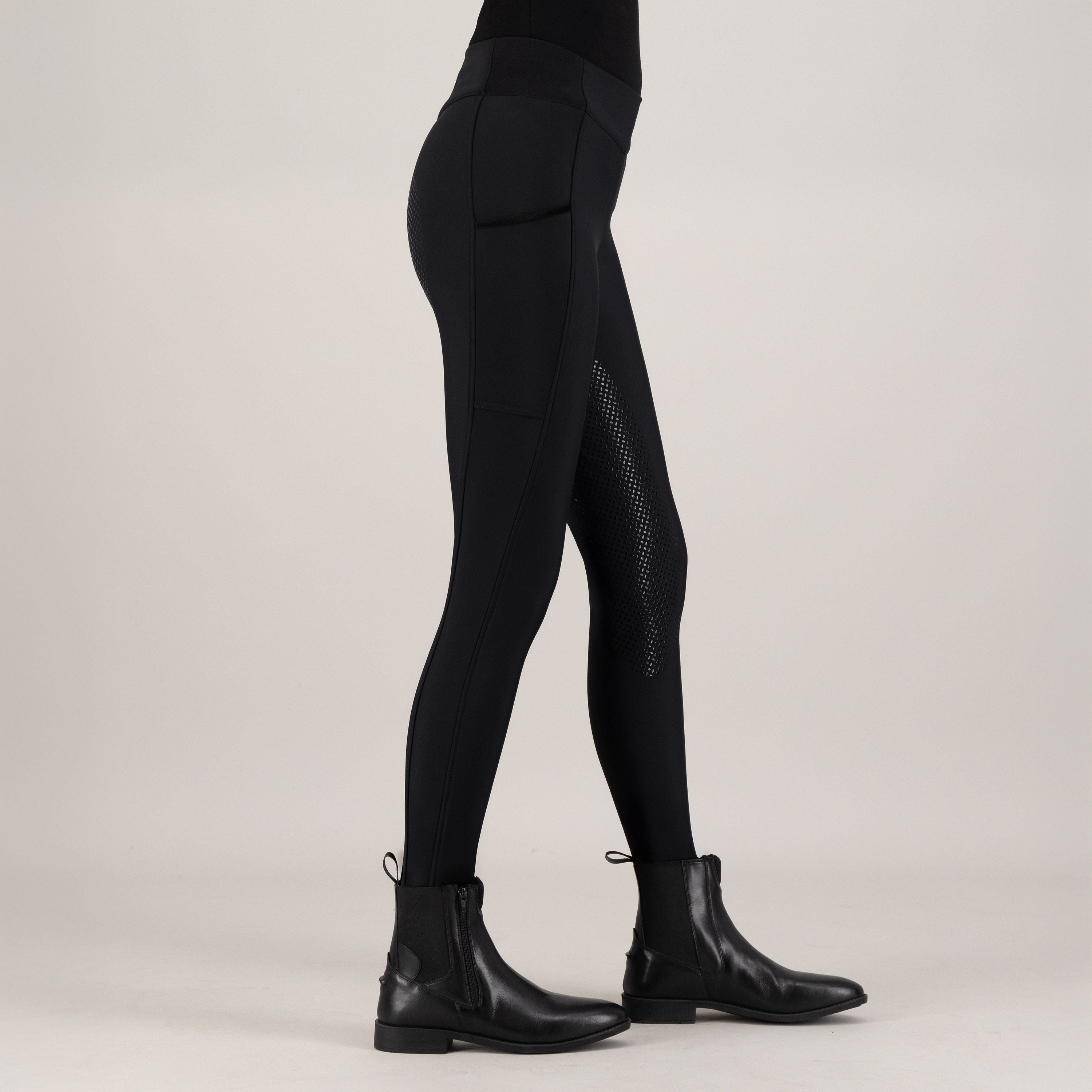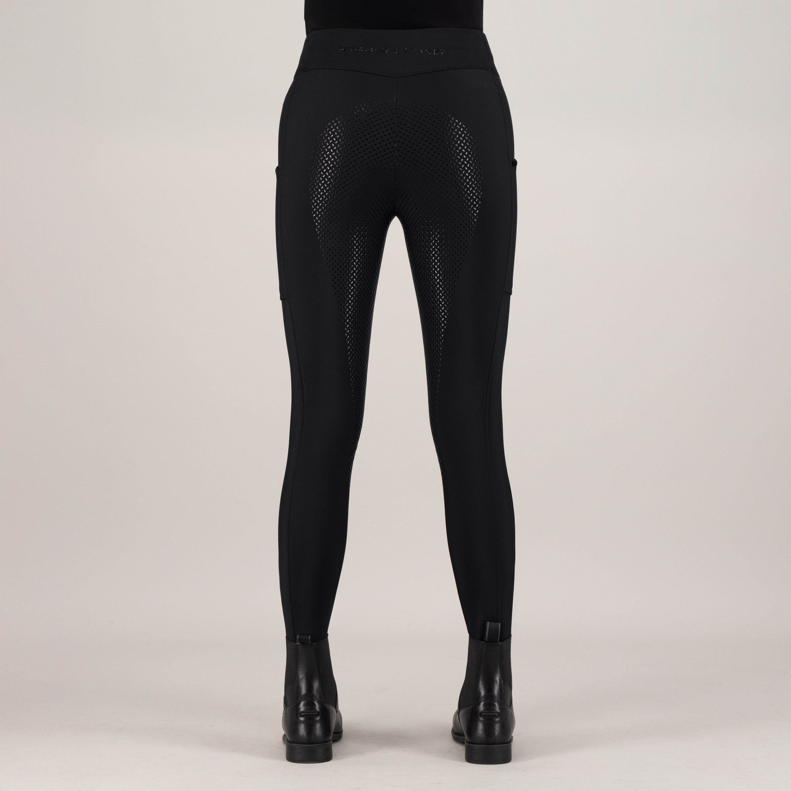 Stel je eens voor: die perfecte rijlegging die niet alleen fantastisch aanvoelt, maar je ook nog eens laat stralen in de stallen en tijdens elke rit. De HVP-Estrelle FullGrip rijlegging is precies dat! Deze rijlegging combineert moeiteloos functionaliteit met een elegante look, helemaal in de stijl van HV Polo. Dankzij de elastische inzetstukken in de tailleband zit hij als gegoten, en het HV Polo logo dat hierin is verwerkt, geeft een subtiele knipoog naar jouw passie voor de paardensport. Of je nu bezig bent met dressuur, een sprongetje waagt of gewoon geniet van een ontspannen buitenrit, de siliconen fullgrip zorgt voor optimale stabiliteit in het zadel. Aan beide zijkanten vind je handige telefoonzakken, perfect om je essentials bij de hand te houden. De linkse zak is zelfs verfraaid met een HV Polo paardenprint en sprankelende studs, terwijl een verfijnd strass-kunstwerk op de achterkant van de tailleband een vleugje glamour toevoegt. De stof is heerlijk zacht en geborsteld aan de binnenkant, super rekbaar en biedt daardoor ultiem comfort voor elke ruiter.