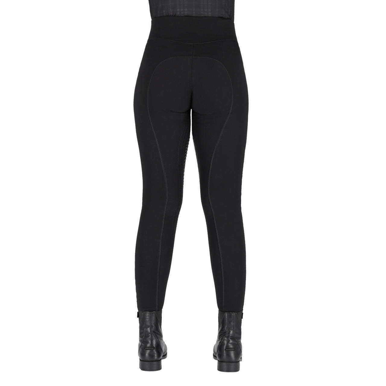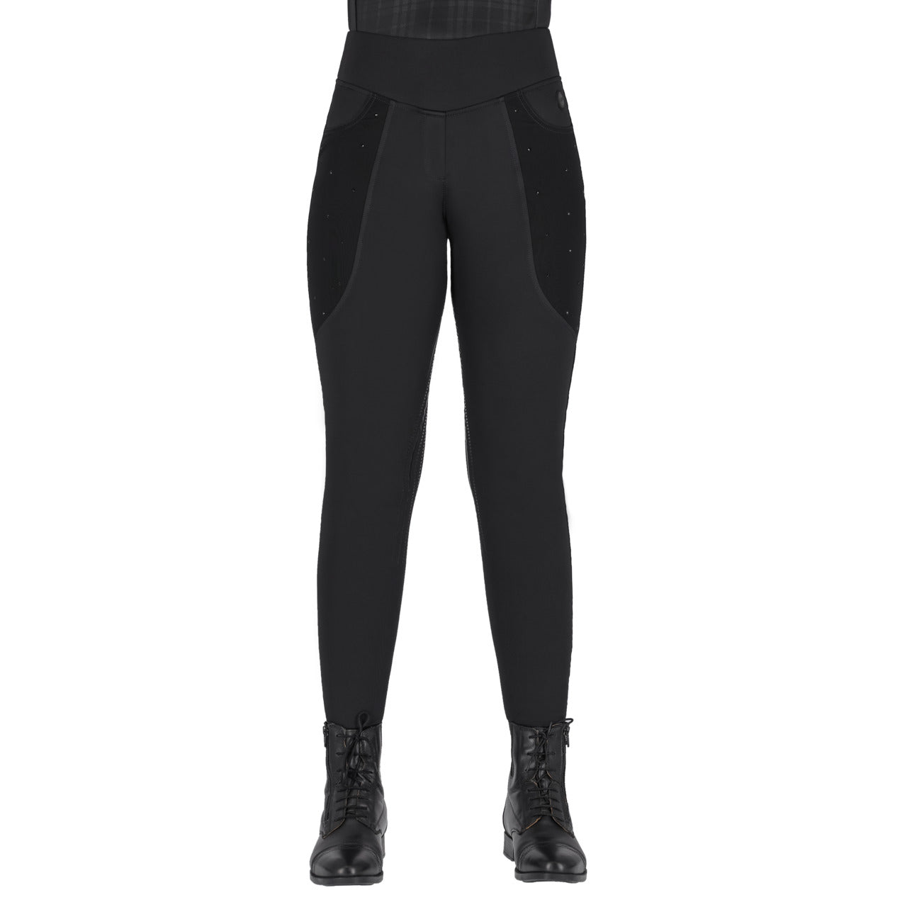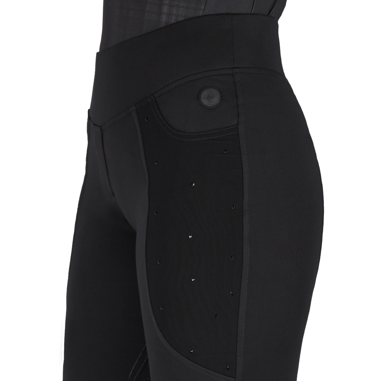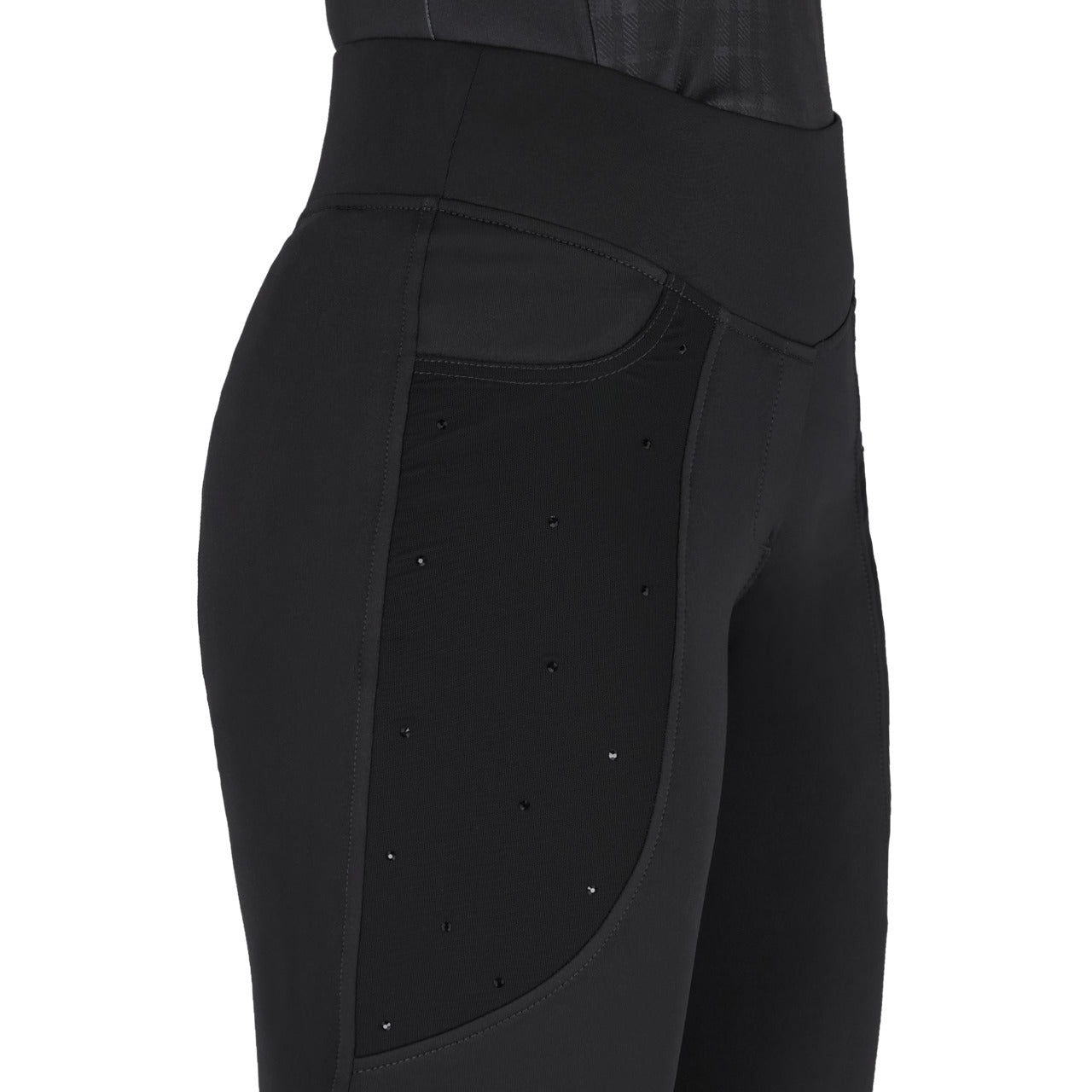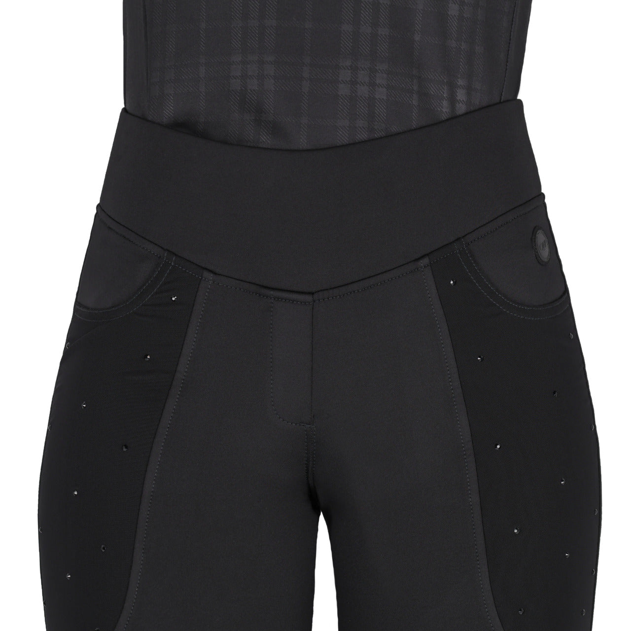 De Zahra rijlegging uit de wintercollectie is vervaardigd uit 4-way stretch stof met een zachte brushed binnenzijde voor optimaal comfort en warmte. Met een hoge taille en elastische tailleband biedt deze legging een perfecte pasvorm. De medium been-grip heeft een decoratief patroon en de steekzakken op beide bovenbenen zijn afgewerkt met een doorzichtige stof en strass-steentjes. Een QHP-logo aan de linkerzijde maakt de rijlegging Zahra af.
