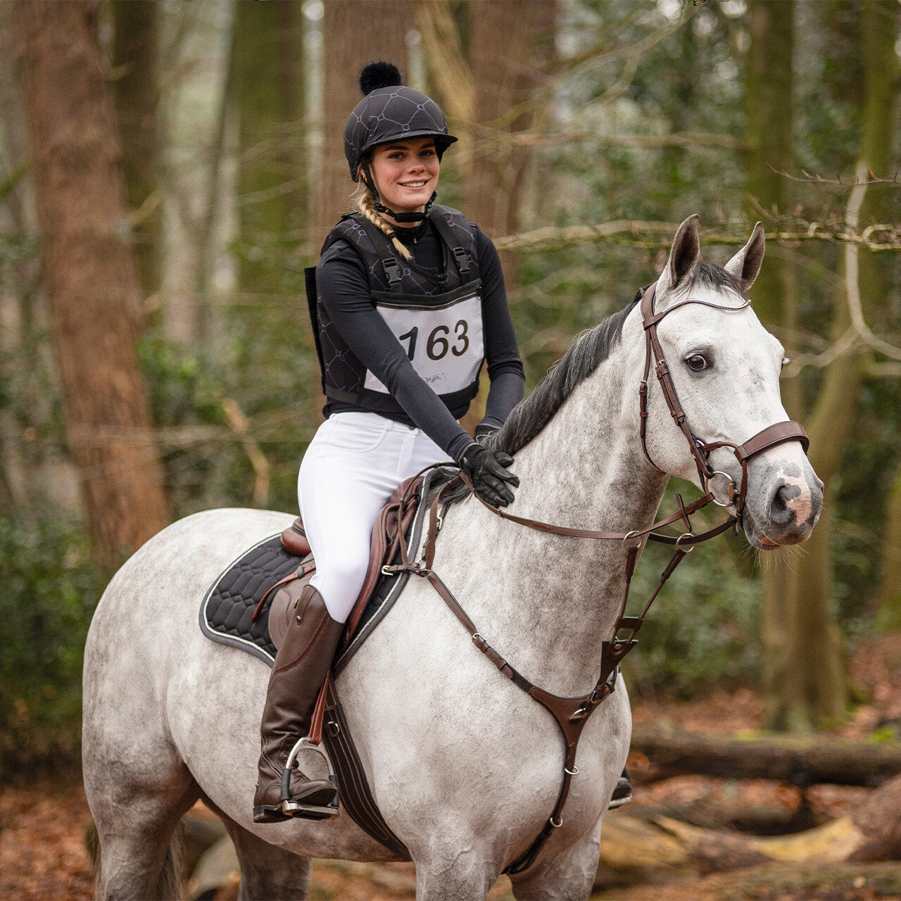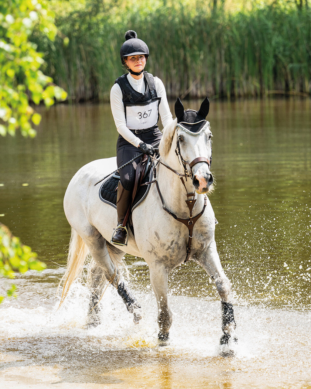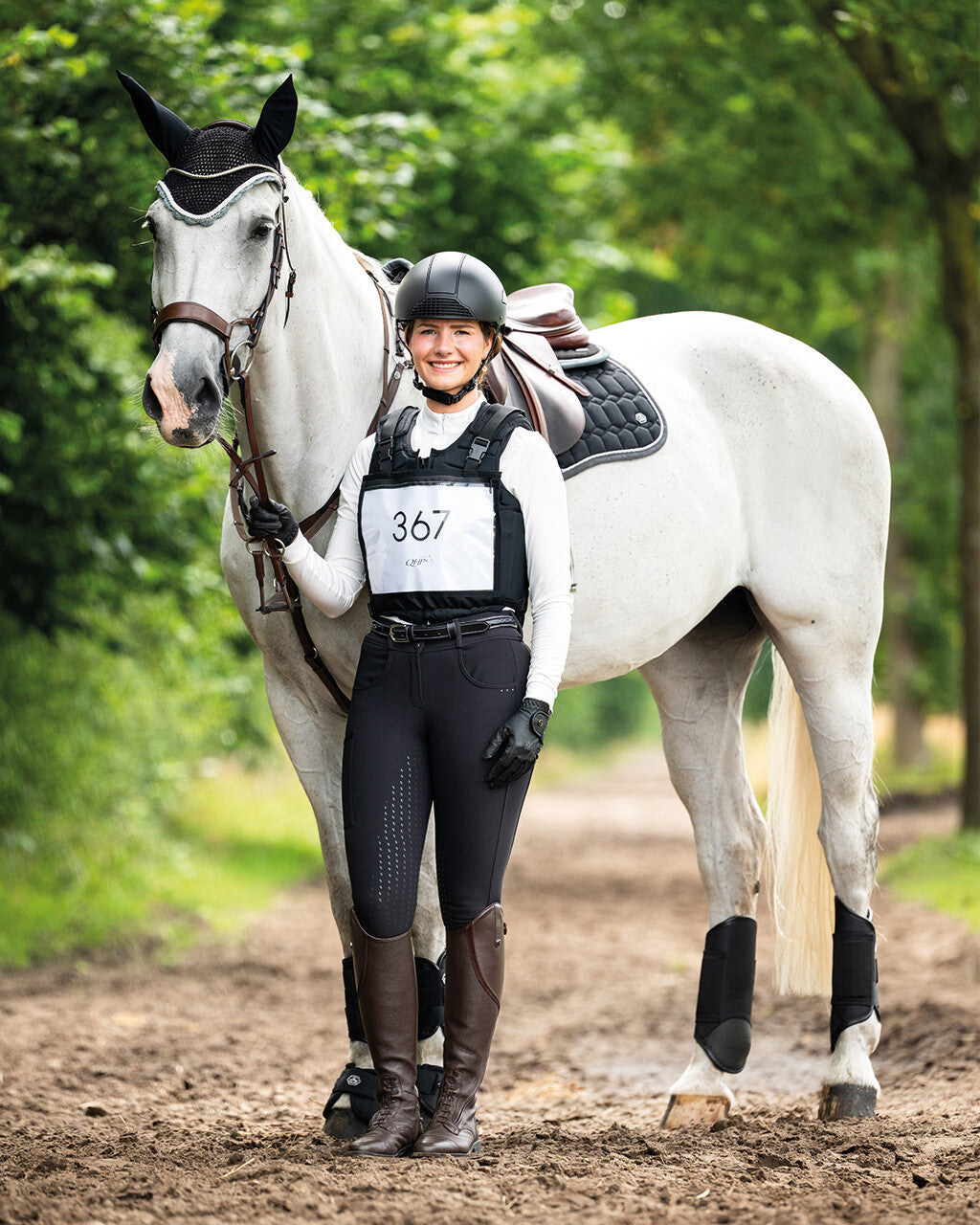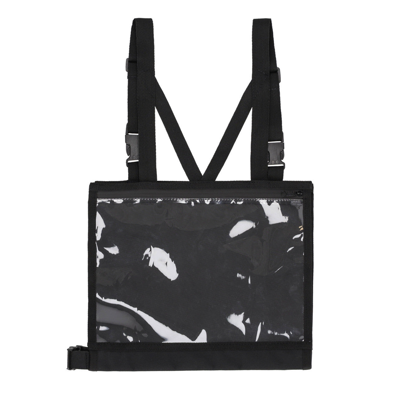De nummerhouder is voorzien van verstelbare schouderbanden en kan onderaan worden bevestigd met een elastische band met clip.