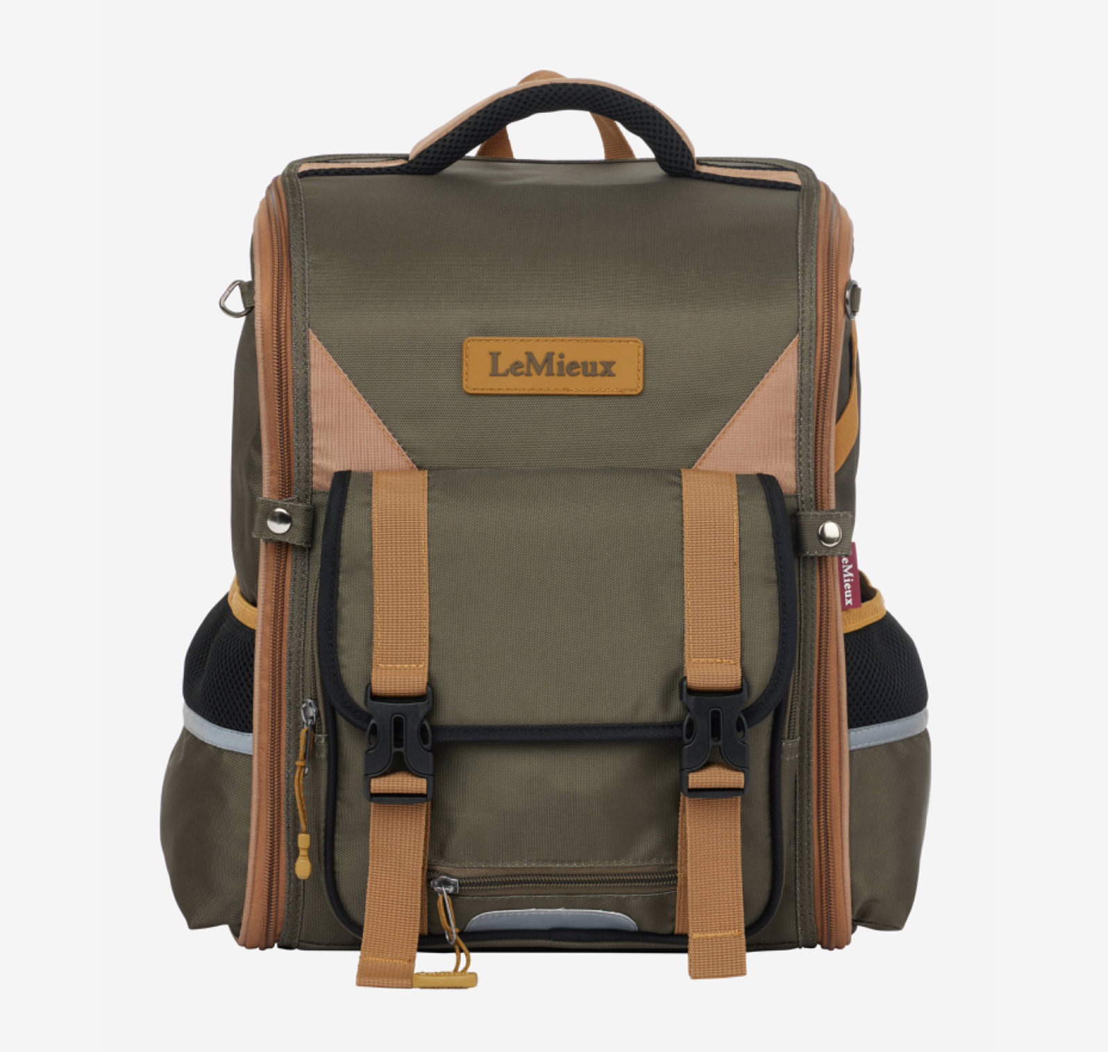Het is speciaal ontworpen voor ruiters en heeft een open te ritsen vak voor je cap en een zweephouder aan de zijkant. Het hoofdvak is volledig open te ritsen zodat je overal makkelijk bij kan. Ideaal als je je nog moet omkleden voor een wedstrijd, les of clinic.