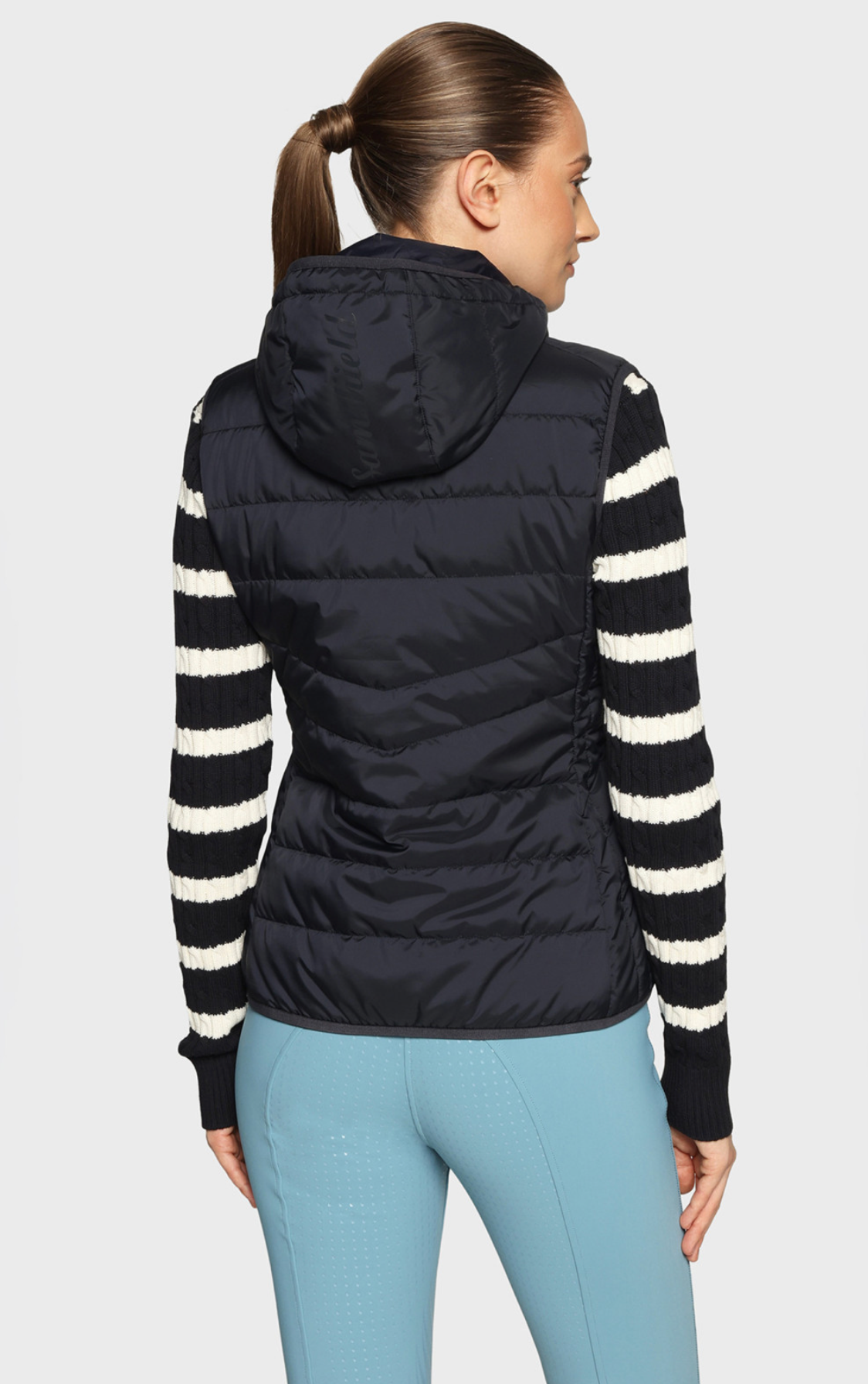 De Alta Badia is de mouwloze donsjas die de motorrijder in alle seizoenen vergezelt, met precisie en lichtheid. De slanke pasvorm structureert het silhouet zonder te knellen, terwijl de afneembare capuchon zich aanpast aan het ritme van de dag. De DuPont™ Sorona®-vulling verspreidt zachte warmte, behoudt zijn lichtheid en beschermt tegen de elementen dankzij de waterafstotende afwerking. Een kledingstuk ontworpen om in laagjes te dragen, te bewegen en te leven.