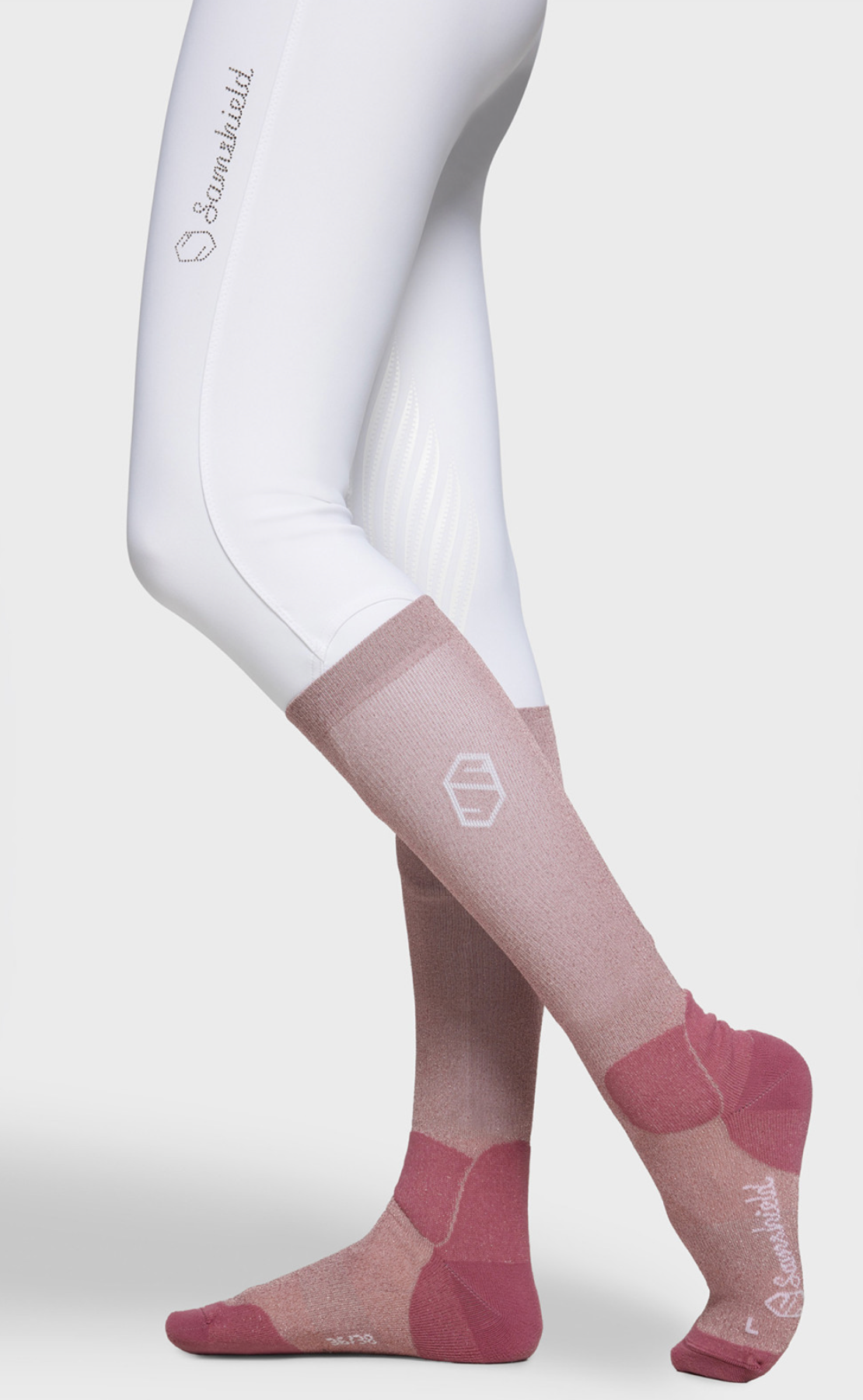 Lichtgewicht en compressief, beschermen ze de enkel en tenen tegen wrijving, terwijl het Samshield-logo aan de bovenkant een verfijnde en discreet glinsterende touch geeft. De ribstructuur aan de bovenkant zorgt voor optimale ondersteuning zonder te knellen, waardoor deze sok een praktische en esthetische must-have is, ontworpen voor stijlvolle en comfortabele prestaties.